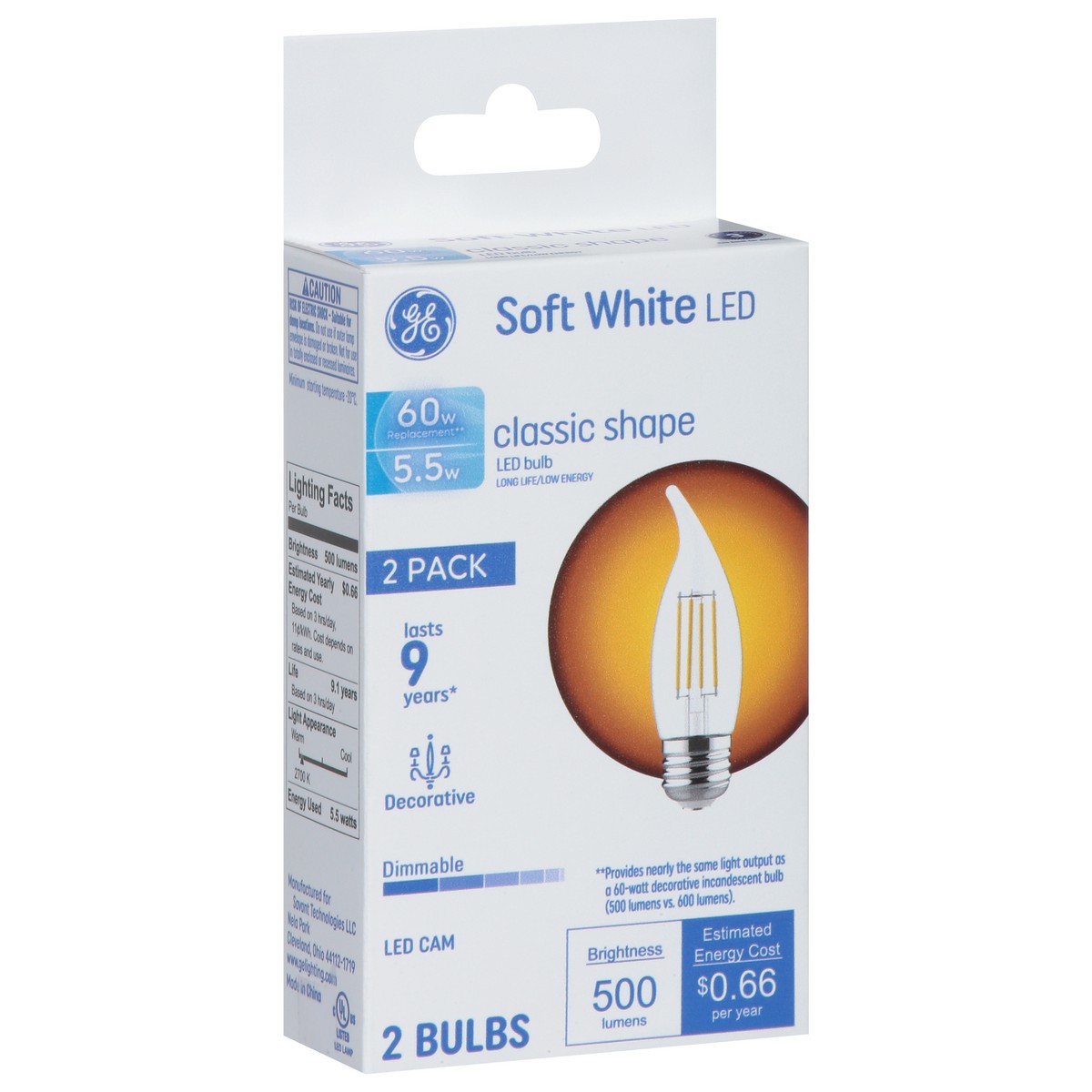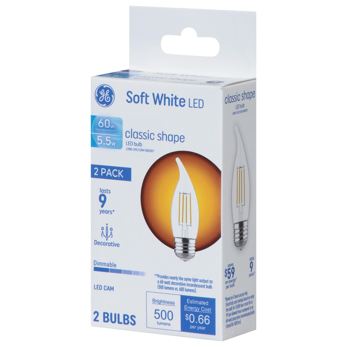 Ge Led 60w Bent Tip Med Clear - 2 Ct
