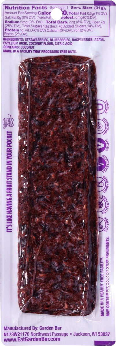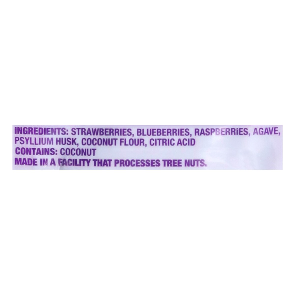 Strawberries, Blueberries, Raspberries, Agave, Psyllium Husk, Coconut Flour, Citric Acid.