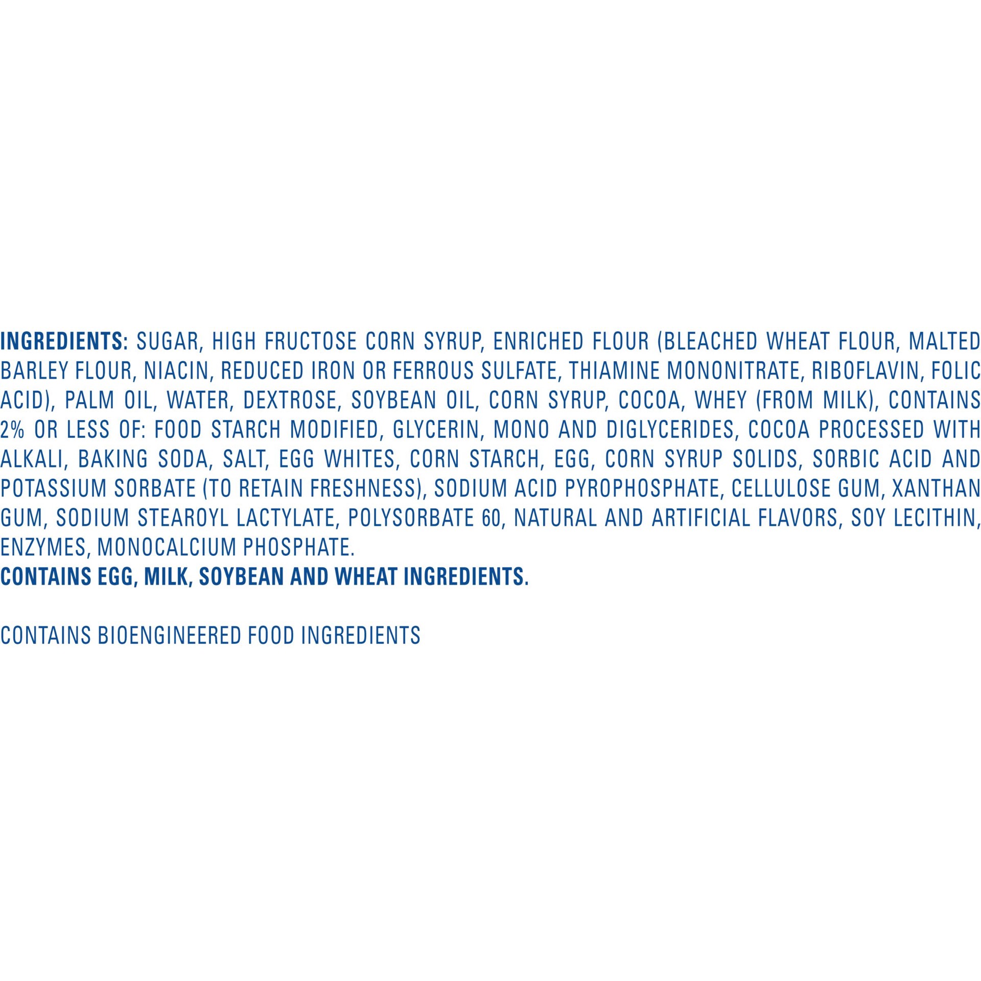 Sugar, High Fructose Corn Syrup, Enriched Flour (Bleached Wheat Flour, Malted Barley Flour, Niacin, Reduced Iron or Ferrous Sulfate, Thiamine Mononitrate, Riboflavin, Folic Acid), Palm Oil, Water, Dex…
