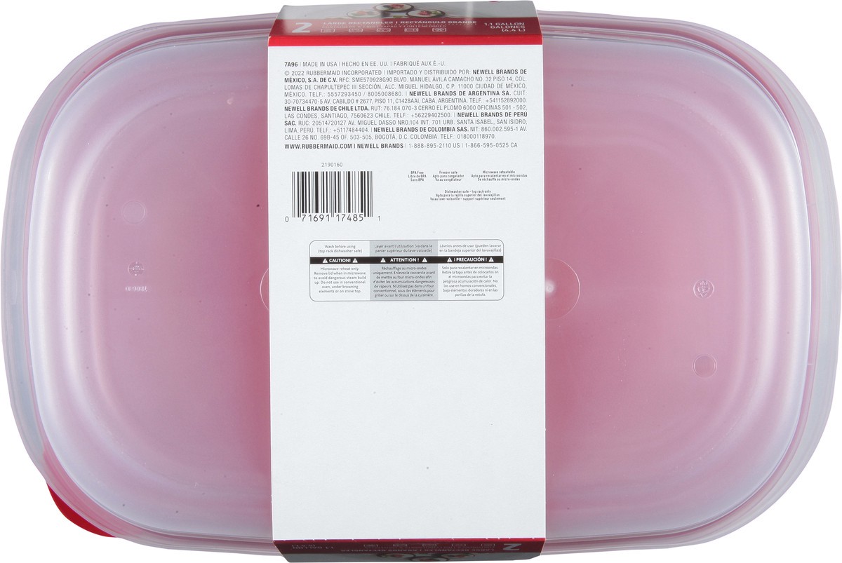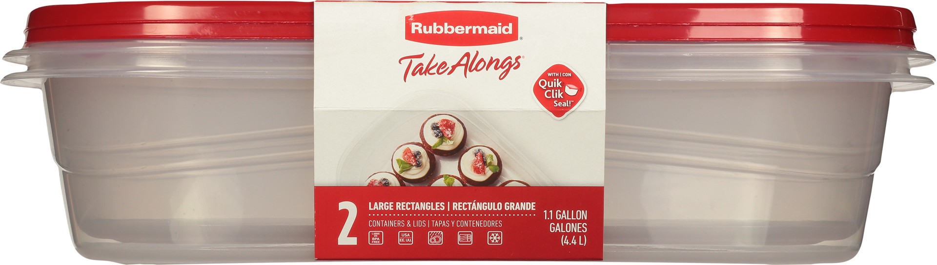 Rubbermaid Take Alongs Containers + Lids Rectangles With Quik Clik Seal Large 1 Gallon - 2 Count