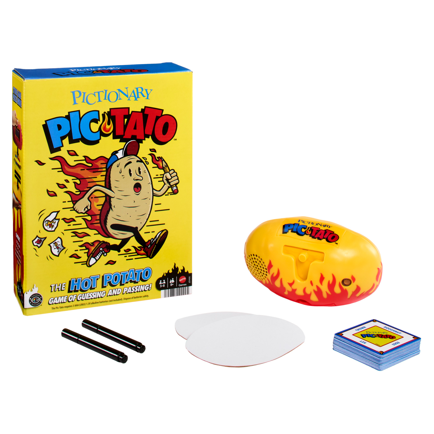 Draw it like it's hot with Pictionary Pic-Tatoa twist on the classic family drawing game. The Pic-Tato plays music as players draw clues. After a clue is guessed, the Pic-Tato says which way to pass s…