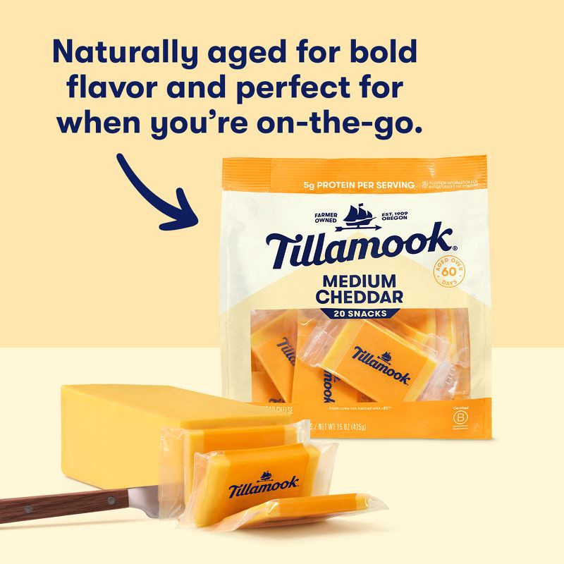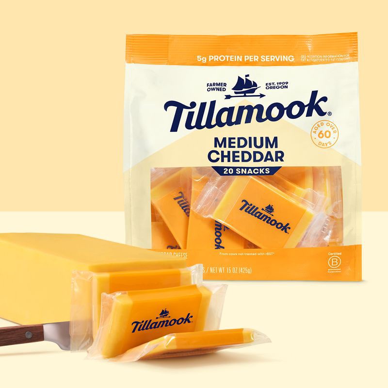 - One 20 ct package of Tillamook Medium Cheddar Cheese Snack Portions