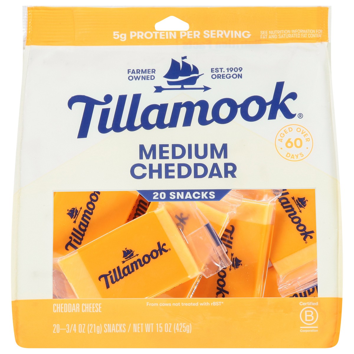 - One 20 ct package of Tillamook Medium Cheddar Cheese Snack Portions