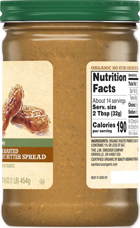 Santa Cruz Organic No Stir Crunchy Dark Roasted Peanut Butter Spread, 16 Ounces