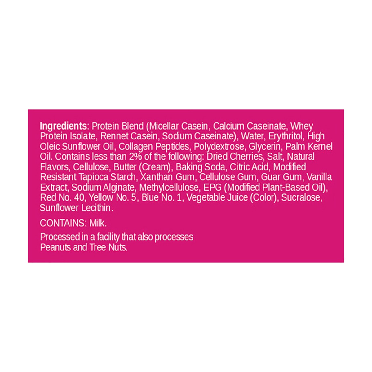 Protein Blend (Micellar Casein, Calcium Caseinate, Whey Protein Isolate, Rennet Casein, Sodium Caseinate), Water, Erythritol, High Oleic Sunflower Oil, Collagen Peptides, Polydextrose, Glycerin, Palm …