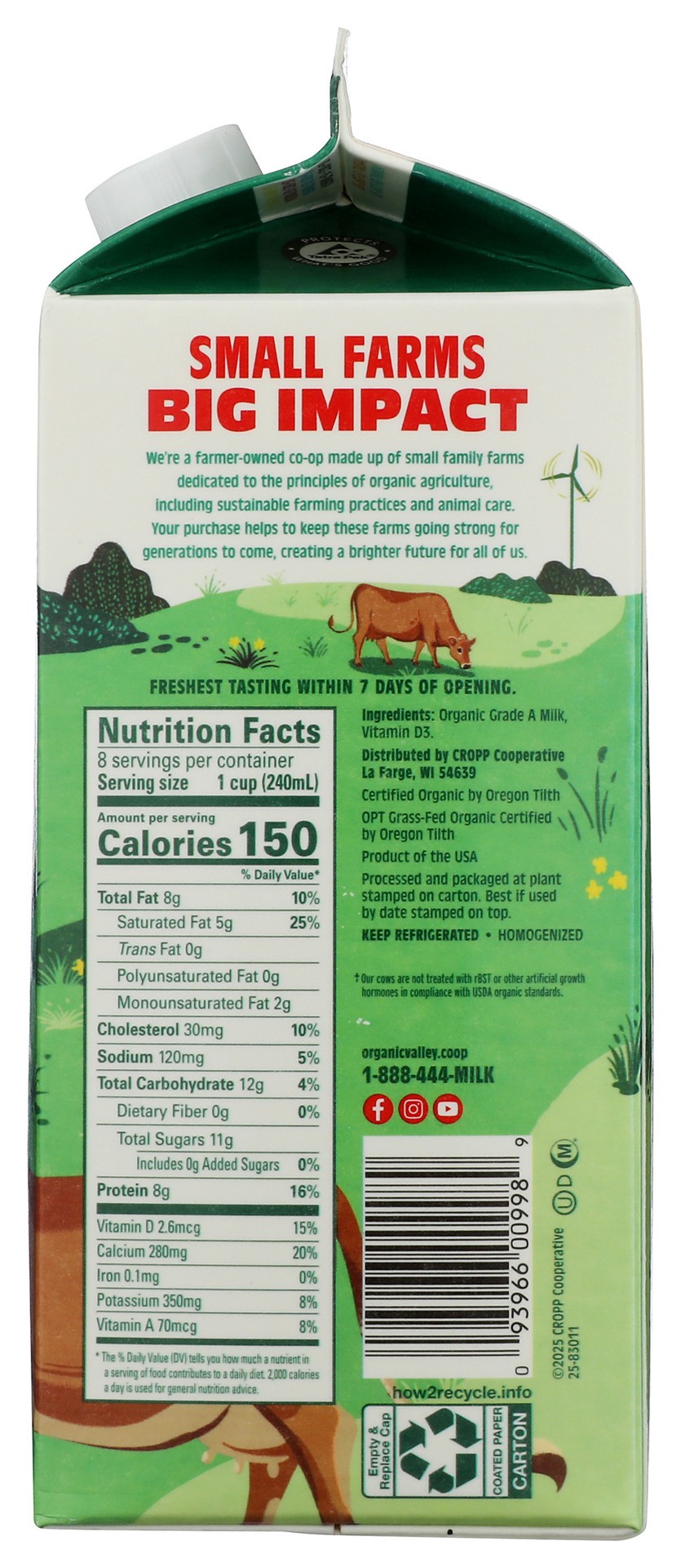 Organic Valley Grassmilk Organic Whole Milk - 0.5 Gallon