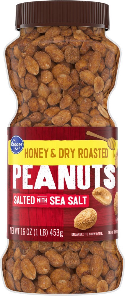 Kroger® Salted Honey & Dry Roasted Peanuts are a crunchy delight! Every handful offers peanuts perfectly glazed with sweet honey, dry roasted, then topped with a dash of sea salt for that lip-smacking…