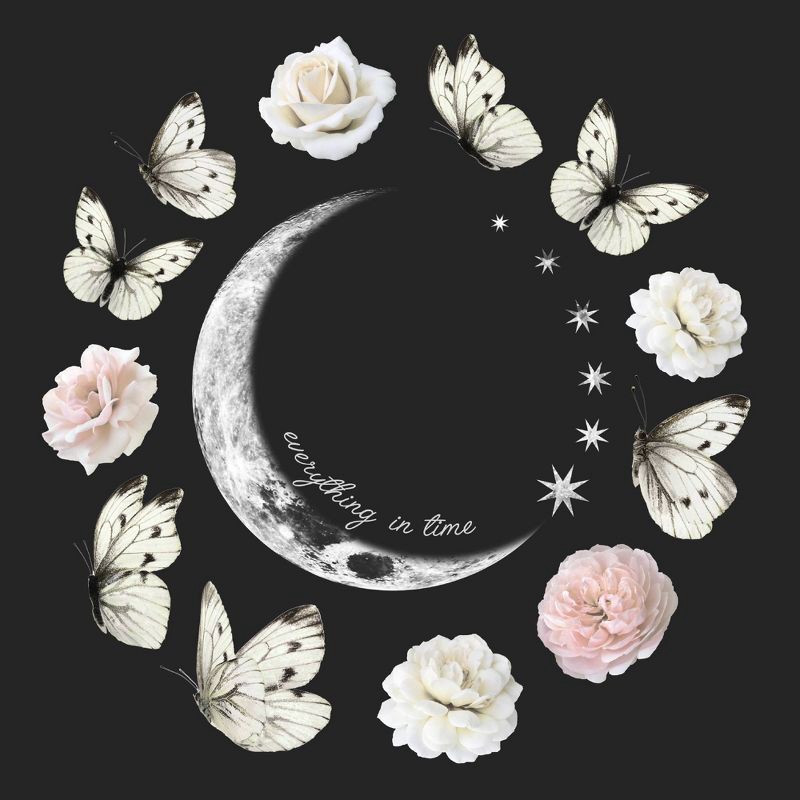 Mighty Fine Women's Floral Butterfly Moon Phase Short Sleeve Graphic T-Shirt - Black XL