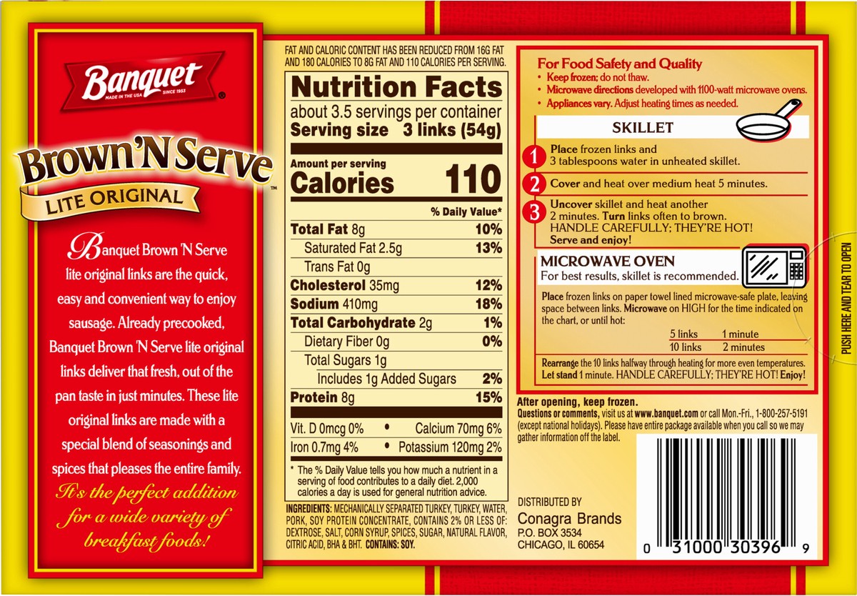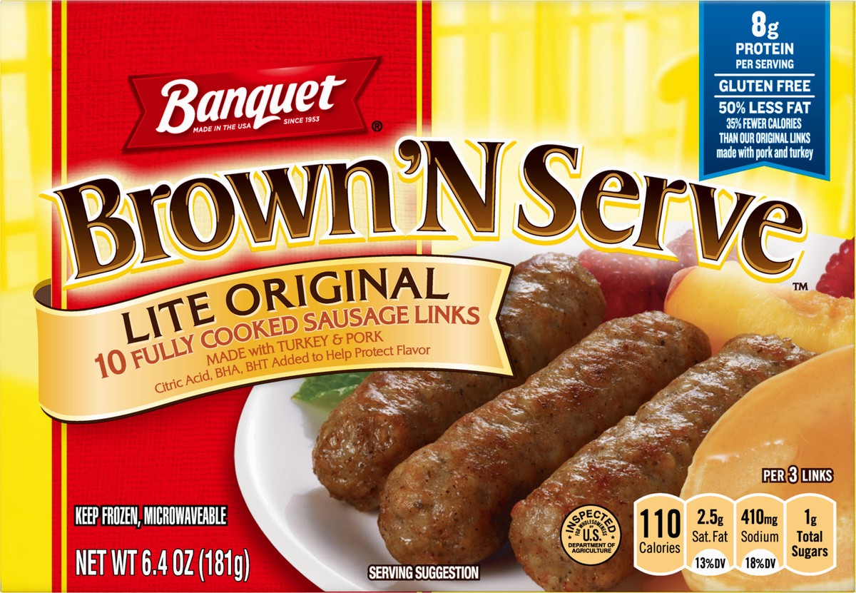 Banquet Brown ‘N Serve Lite Original Fully Cooked Sausage Links Frozen Meat offers an easy way to treat yourself and family to a hearty frozen breakfast side. These precooked breakfast sausage links a…
