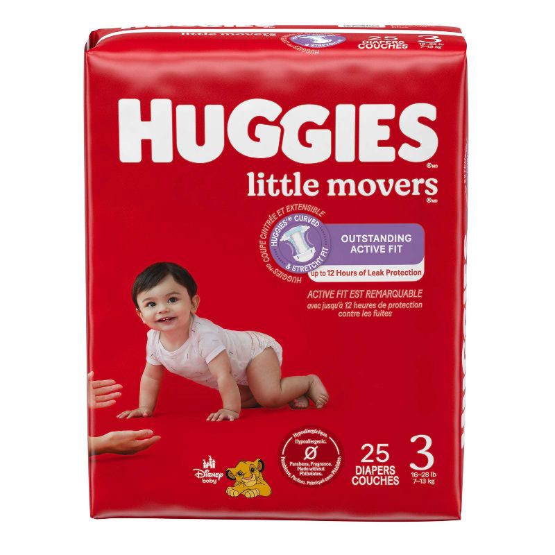 - Huggies Little Movers Diapers: 25 baby diapers, size 3 (16-28 lbs)