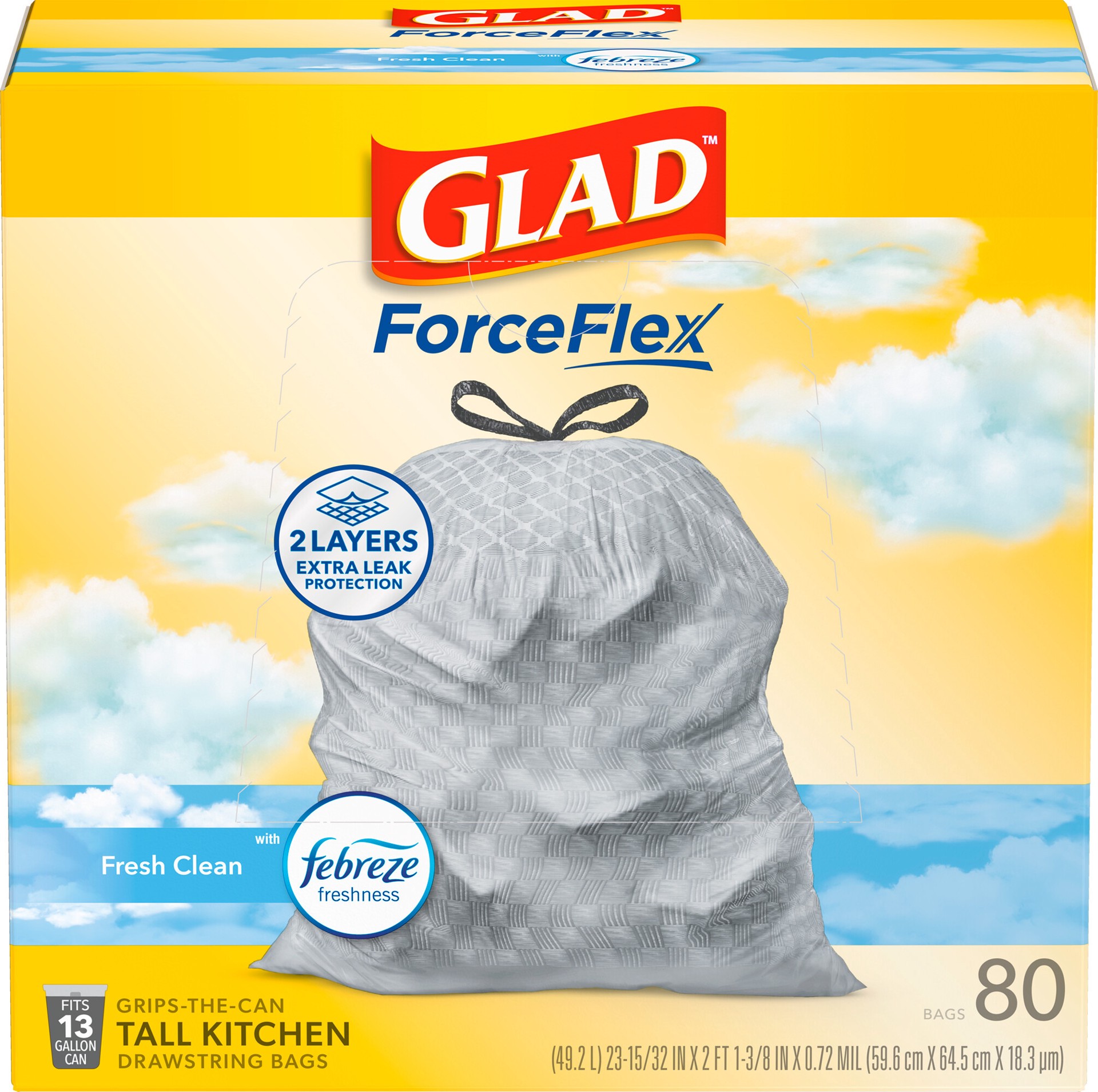 Glad Force Flex Drawstring Fresh Clean Odor Shield 13 Gallon 80ct