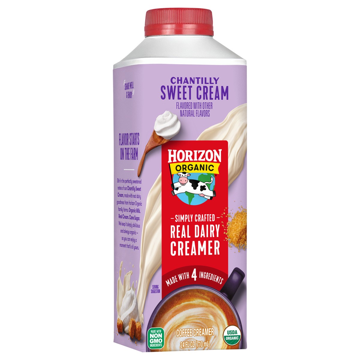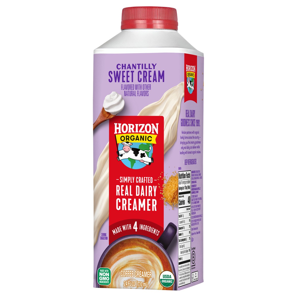 Elevate your coffee with Horizon Organic Real Dairy Chantilly Sweet Cream Coffee Creamer. Discover a delicious organic creamer made with four ingredients – organic milk, organic cream, organic cane su…