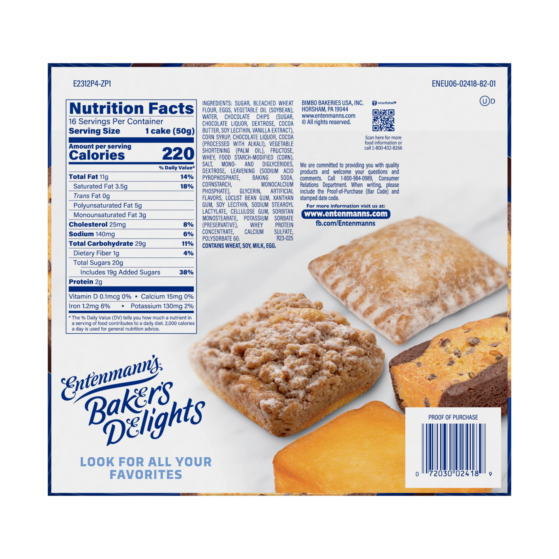 - One 28 oz box of sixteen Entenmann's Mini Brownie Chocolate Chip Snack CakesEntenmann's Mini Brownie Chocolate Chip Snack Cakes combine a soft baked chocolate chip cookie and a moist fudgy brownieThese snack cakes are the perfect size to satisfy your craving no matter where you areEntenmann's Mini Brownie Chocolate Chip Snack Cakes are certified kosher dairy so everyone can enjoy the fun and delicious tasteEntenmann’s Mini Brownie Chocolate Chip Snack Cakes are individually wrapped
