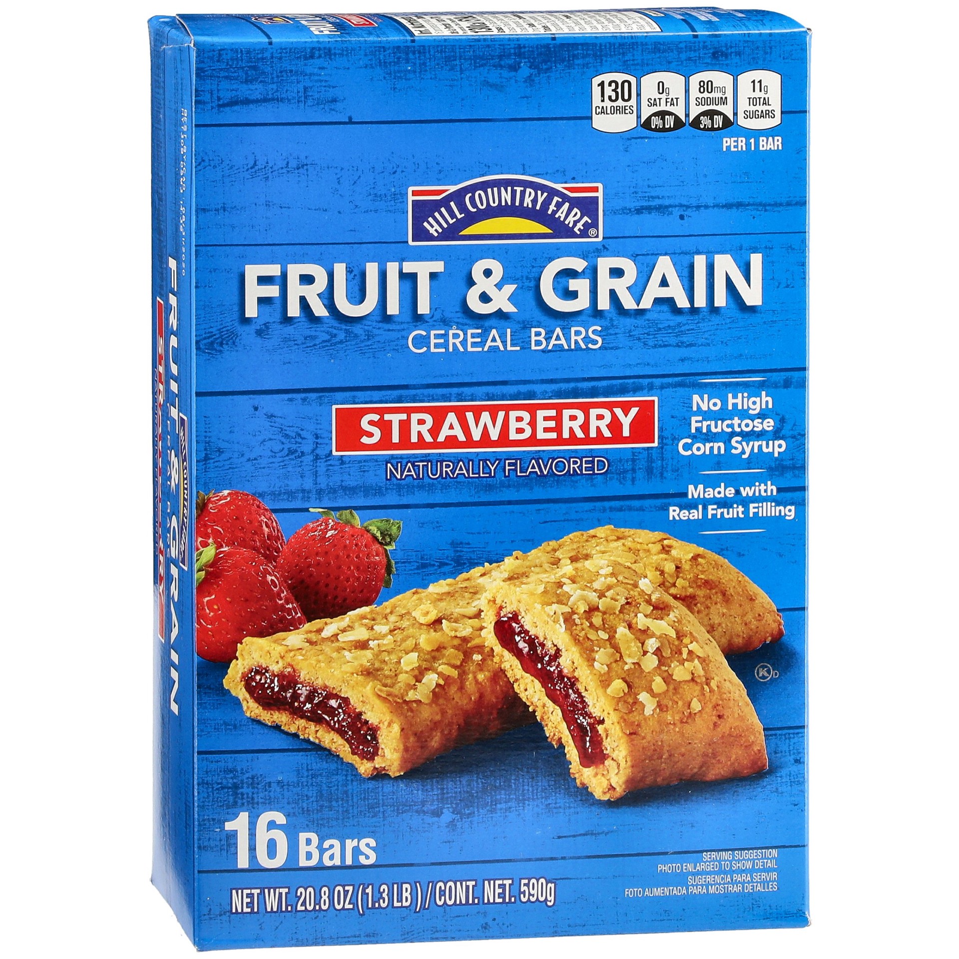 Made with a real strawberry filling, Hill Country Fare cereal bars are handy to have in your pantry. Not just for breakfast time, they're a yummy snack any time of day. Take a bite and enjoy their sof…