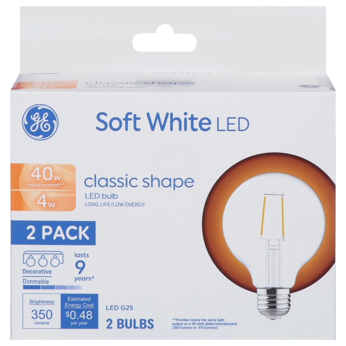 GE 4 Watts Classic Shape Soft White LED Light Bulbs 2 ea