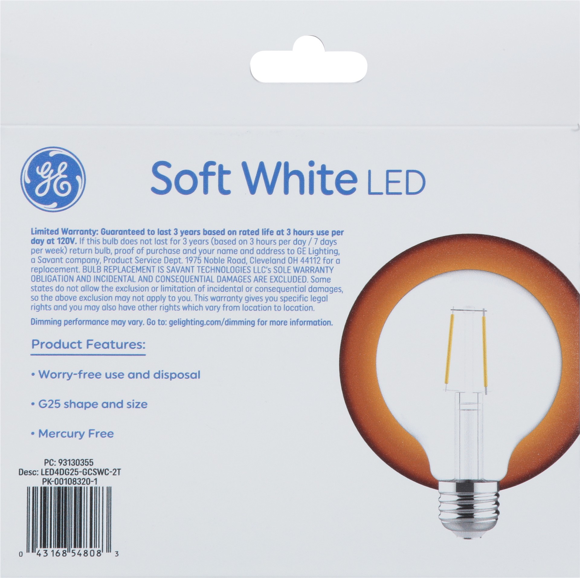 Ge Led 40w Sw Globe G25 Frost - 2 Ct