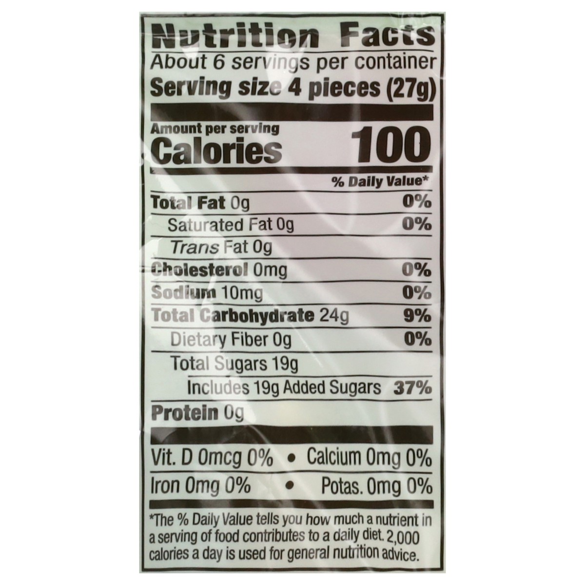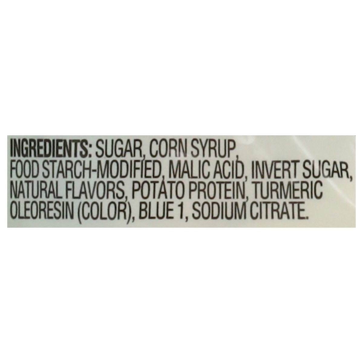 Sugar, Corn Syrup, Food Starch-Modified, Malic Acid, Invert Sugar, Natural Flavors, Potato Protein, Turmeric Oleoresin (Color), Blue 1, Sodium Citrate.