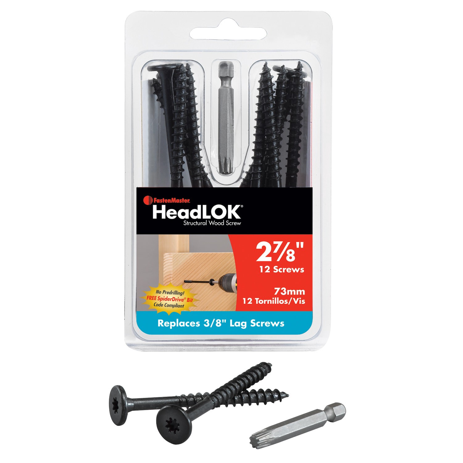HeadLOK by FastenMaster 2-7/8-in Black Ecoat Flat -Head Exterior Structural wood screws 12 -Pack