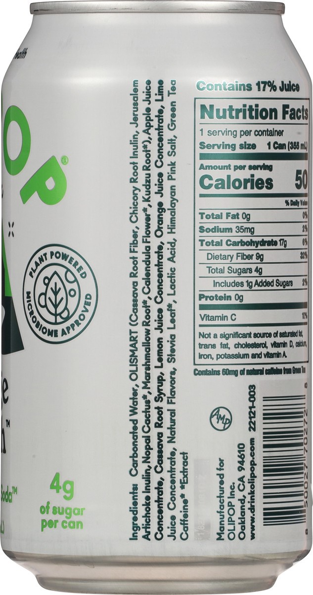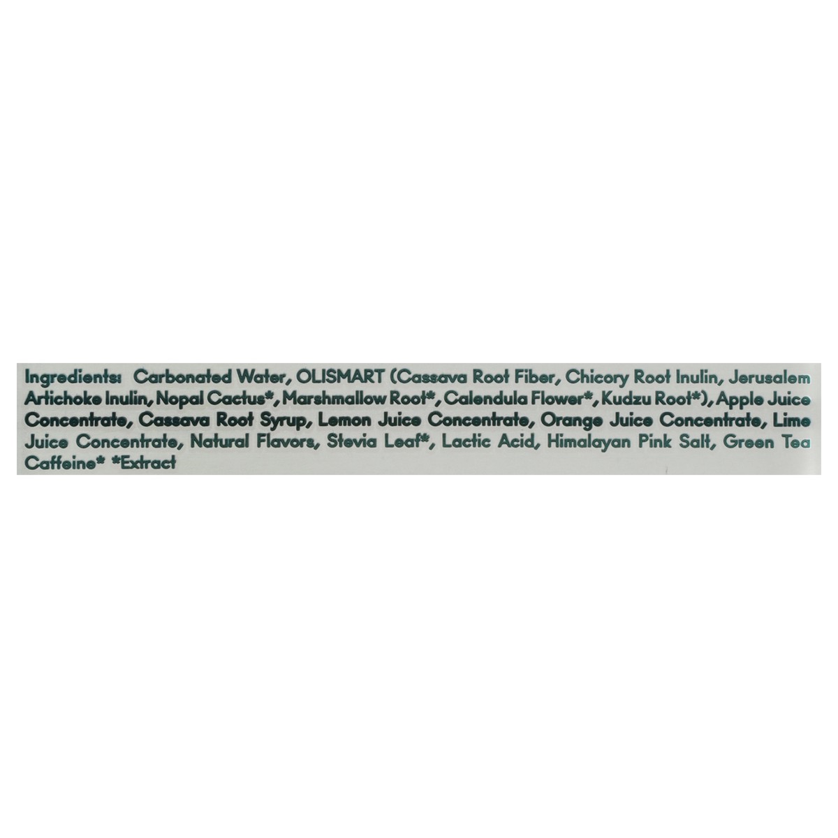Carbonated Water, OliSmart (Cassava Root Fiber, Chicory Root Inulin, Jerusalem Artichoke Inulin, Nopal Cactus*, Marshmallow Root*, Calendula Flower*, Kudzu Root*), Apple Juice Concentrate, Cassava Roo…