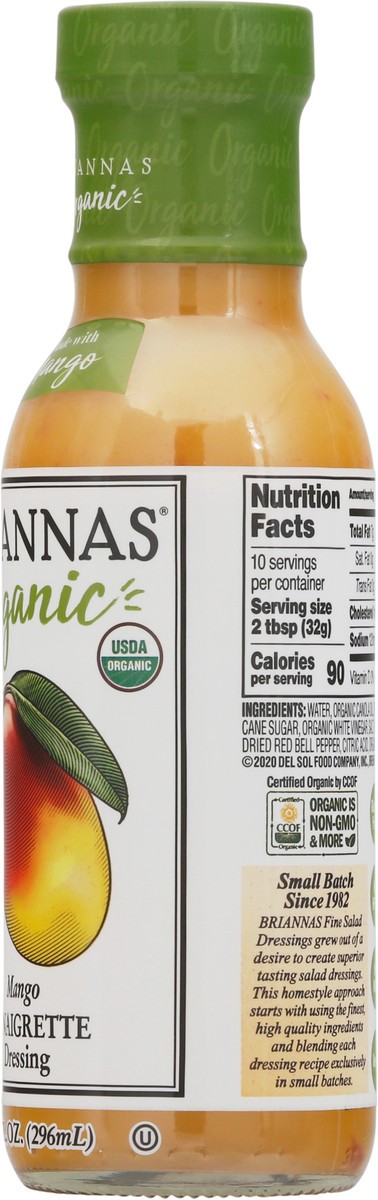 Briannas Organic Dressing Vinaigrette Mango - 10 Oz