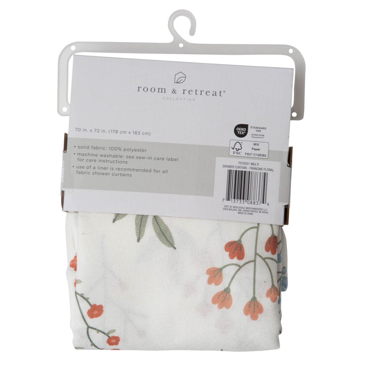 Room & Retreat Francine Floral Fabric Shower Curtain, 70 x 72 in, Multicolored