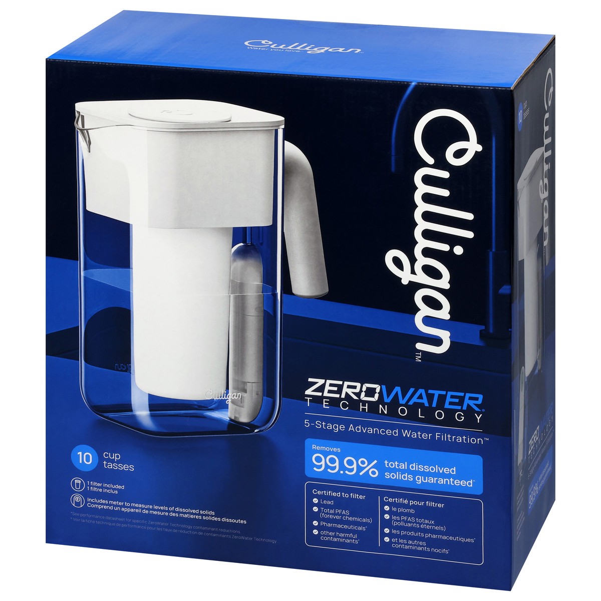 Culligan with ZeroWater Technology 10 Cup Water Filter Pitcher with 5-Stage Advanced Water Filter• 5-stage advanced water filter pitcher: Our filter's 5-Stage Advanced Water Filtration technology remo…