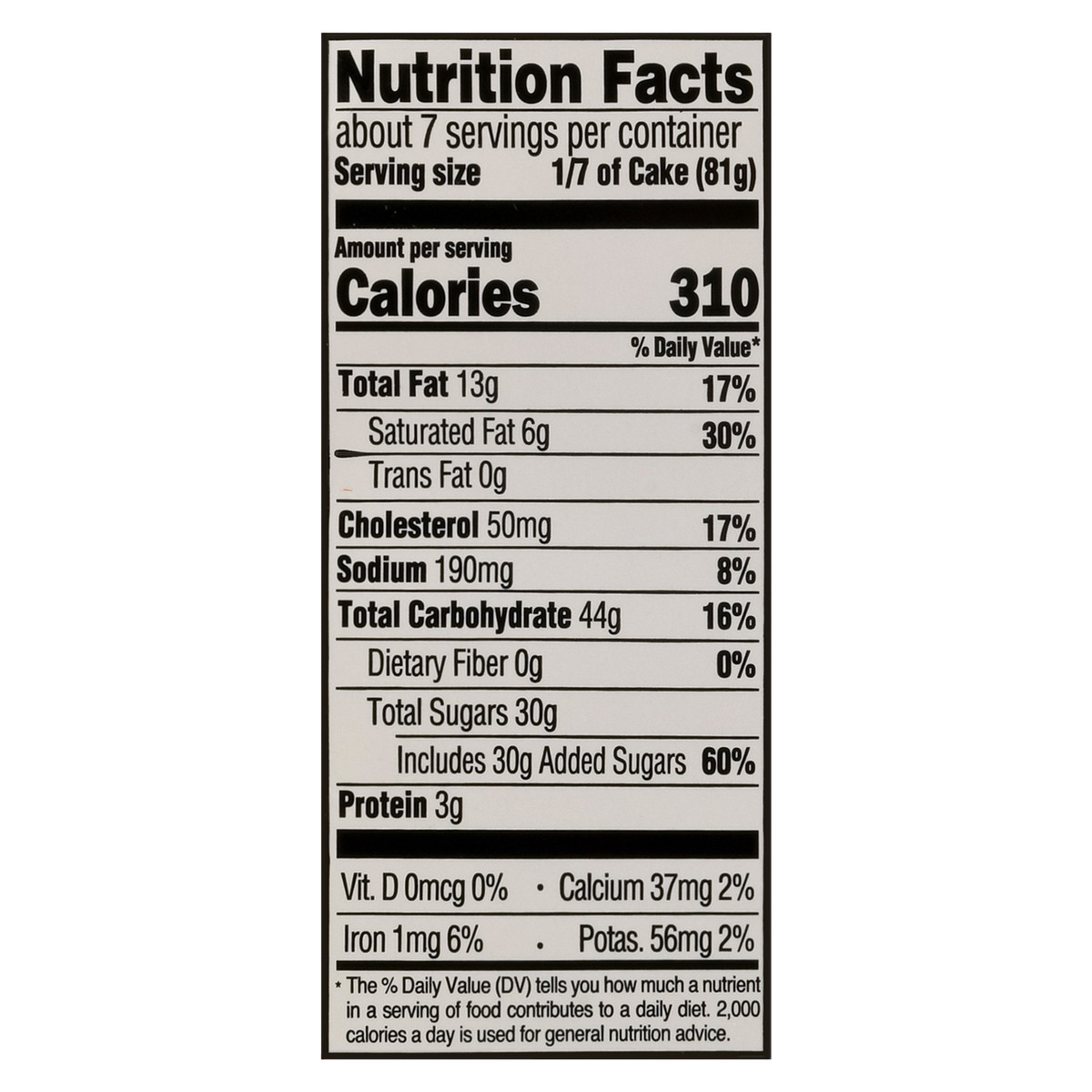 Sugar, Bleached Enriched Flour (Wheat Flour, Niacin, Reduced Iron, Thiamine Mononitrate, Riboflavin, Folic Acid), Water, Eggs, Vegetable Oil (Contains One or More of the Following: Soybean Oil, Canola…