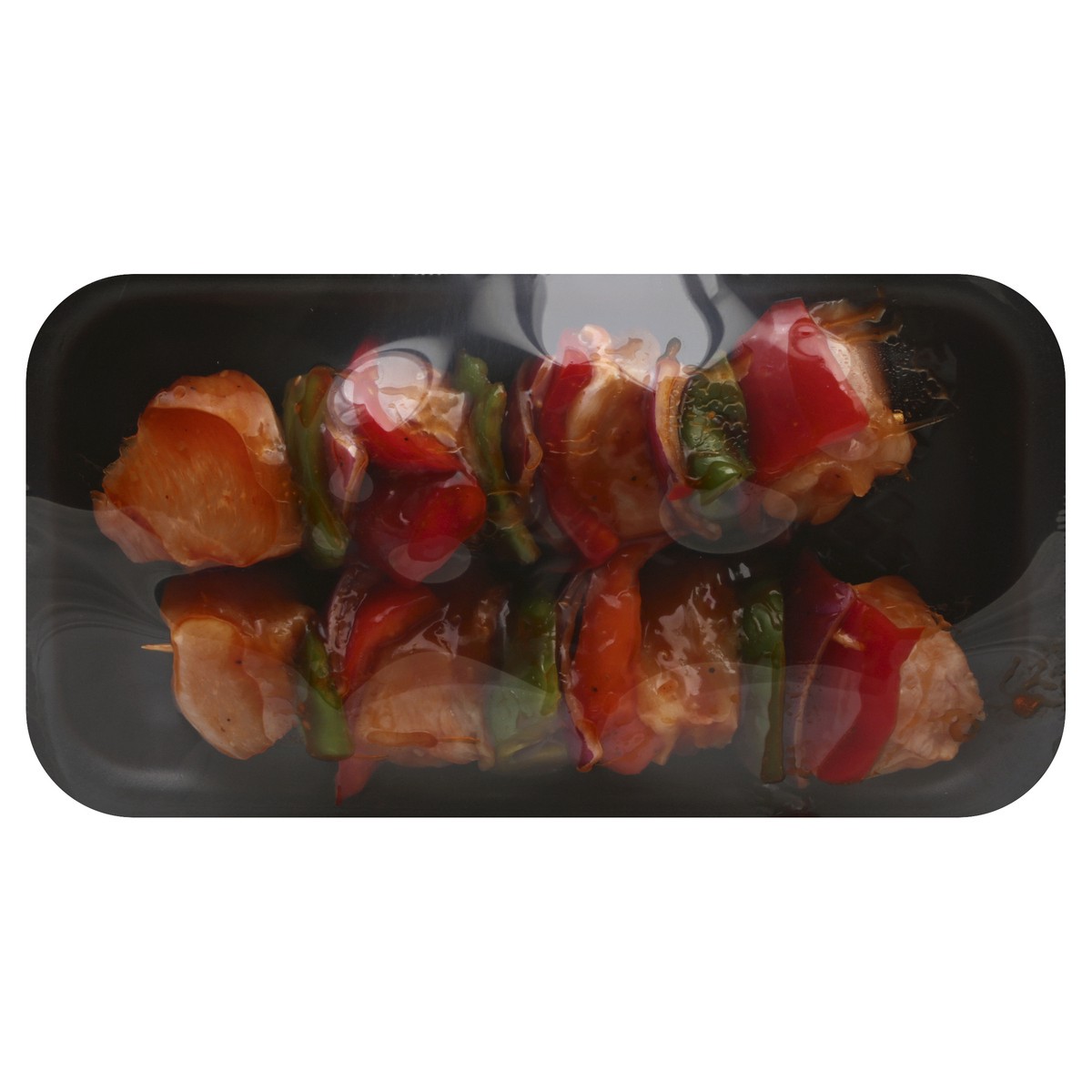 Boneless, Chicken Breast, Fresh Green Bell Peppers, Fresh Red Bell Peppers, Fresh Red Onion Slices, Water, Soy Sauce (Water, Wheat, Soybeans, Salt), Sugar, Salt, Garlic Puree, Modified Food Starch, Pe…