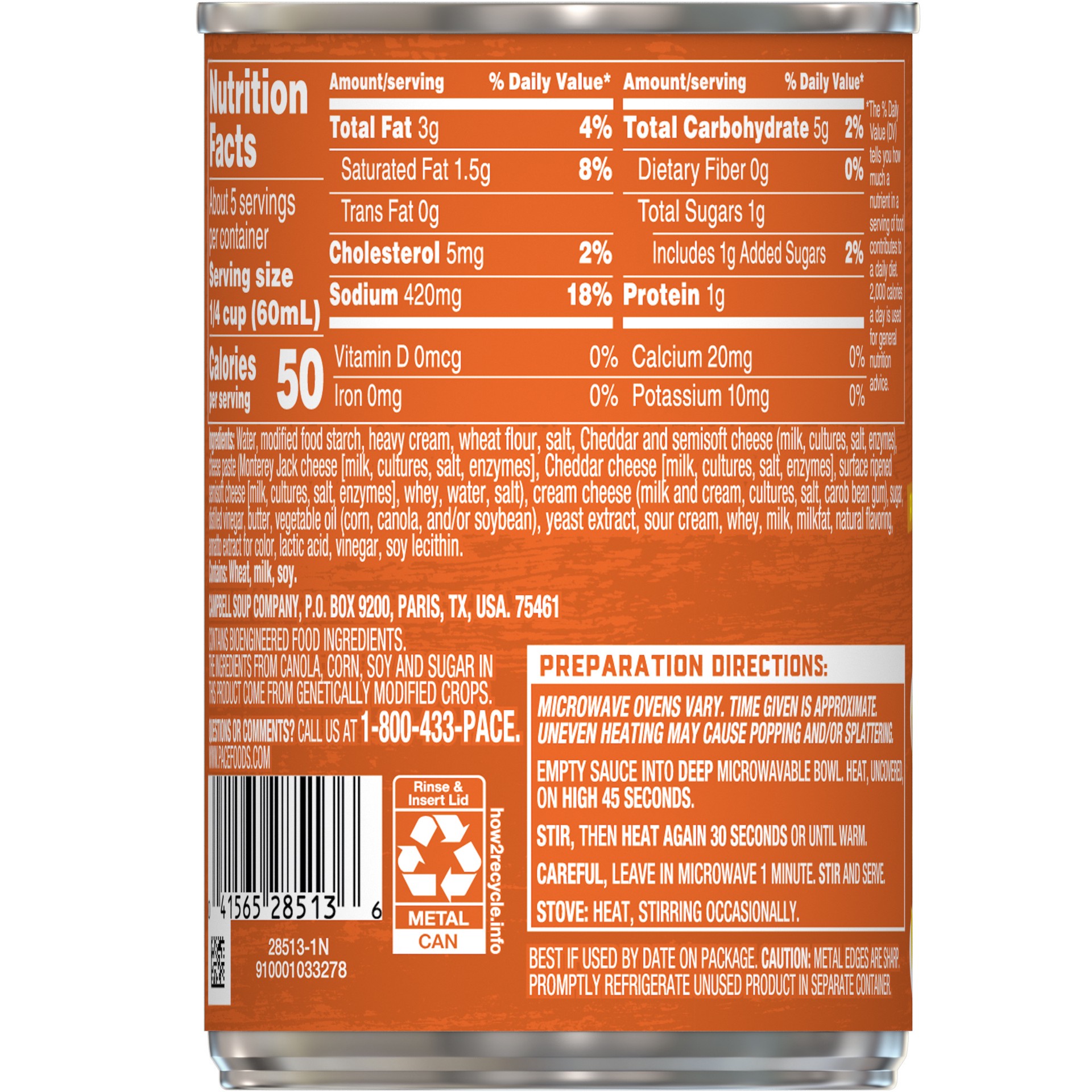 - One (1) 10.5 oz Can of Pace Mild Nacho Cheese Sauce