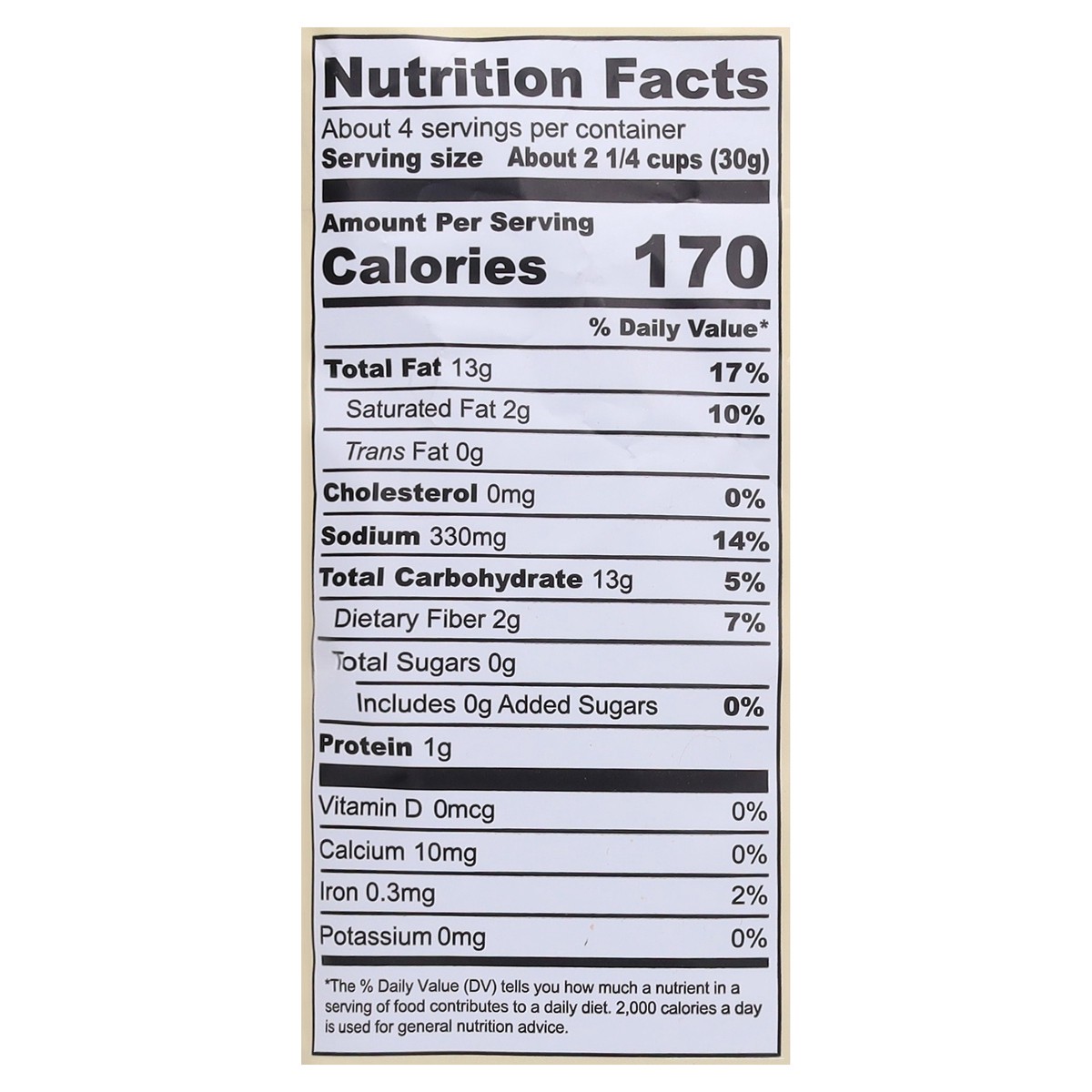 Popcorn, Avocado Oil, Vegan White Cheddar Seasoning (Rice Flour, Salt, Acacia Gum, Lactic Acid, Natural Flavor).