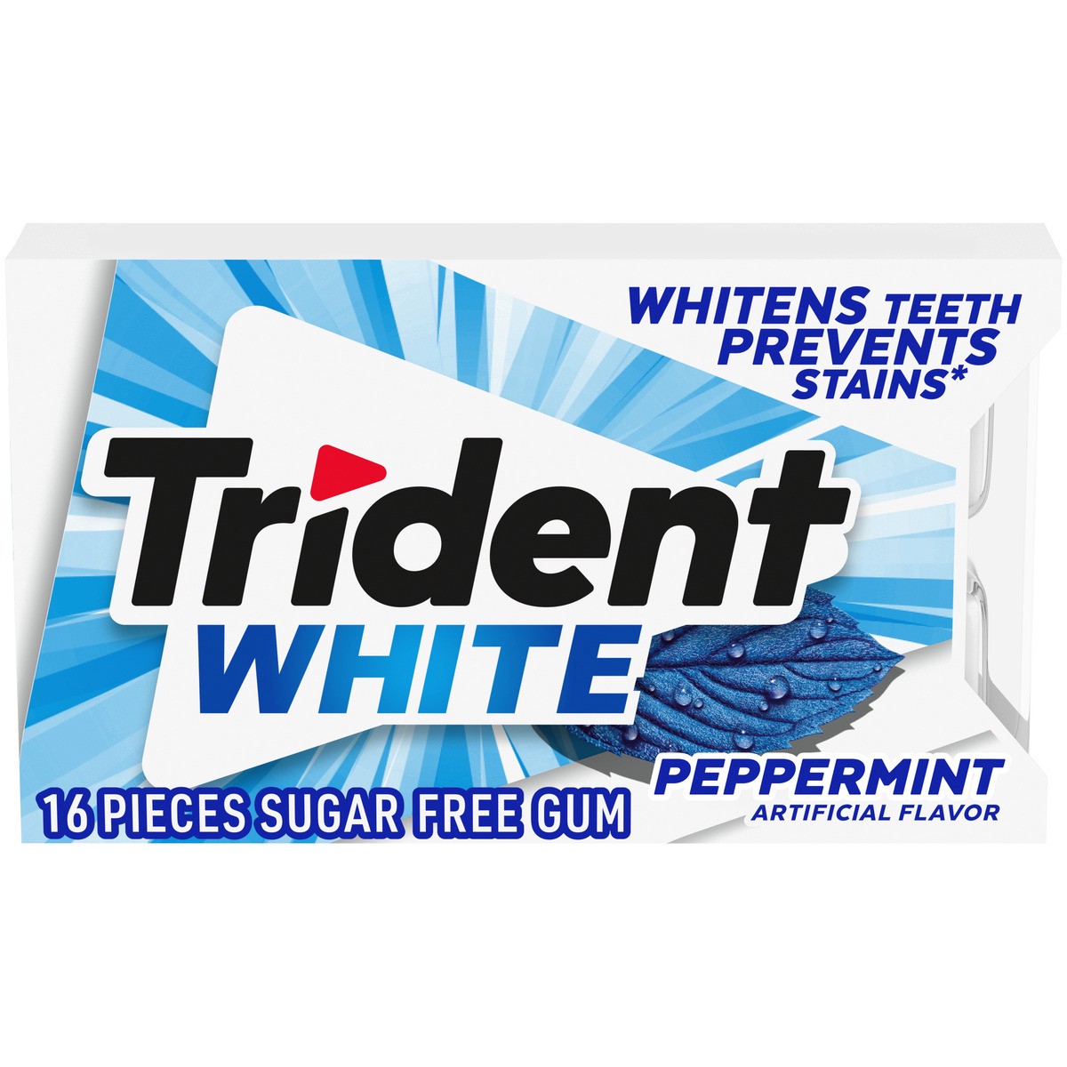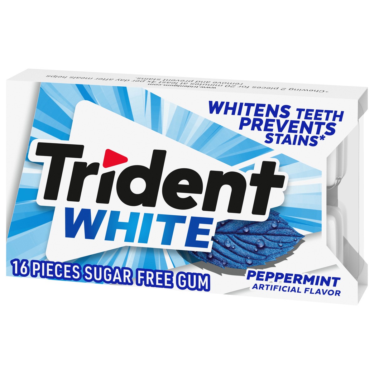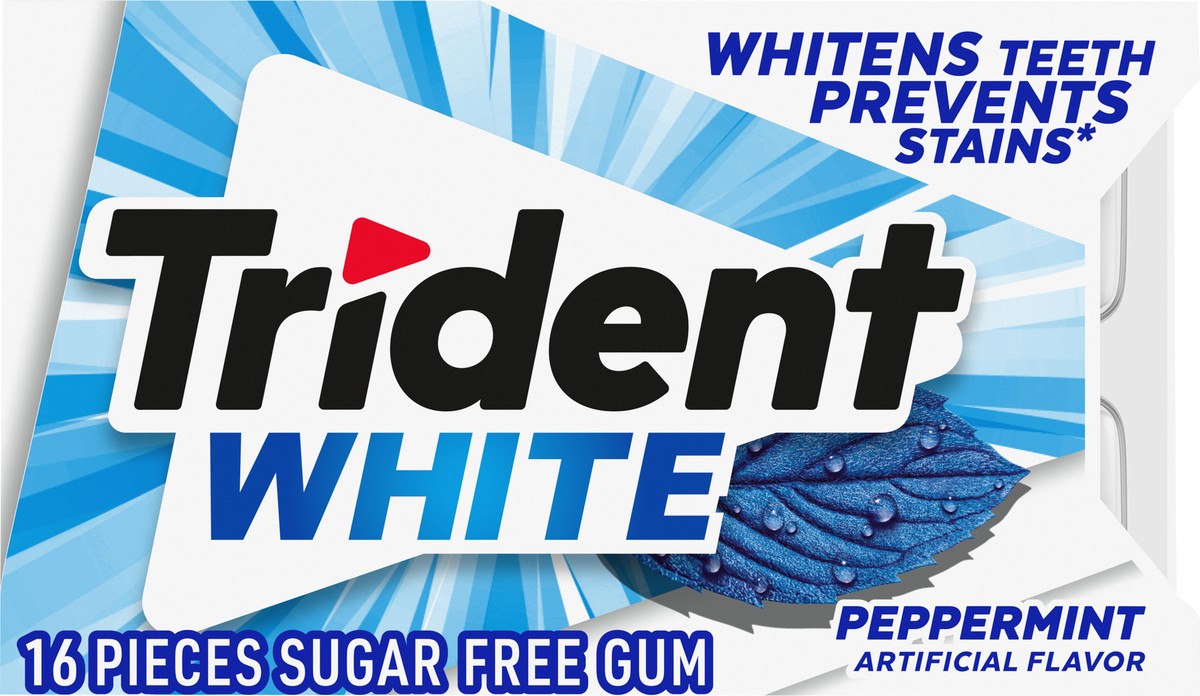 Trident White Peppermint Sugar Free Gum whitens teeth, prevents stains and gives you fresh breath. This refreshing peppermint flavored gum brings sparkle to your smile by whitening teeth and preventin…