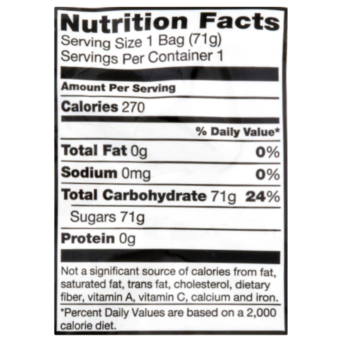 Sugar, Artificial and Natural Flavors, Artificial Colors (Including FD&C Red 40, Blue 1), Turmeric Coloring.