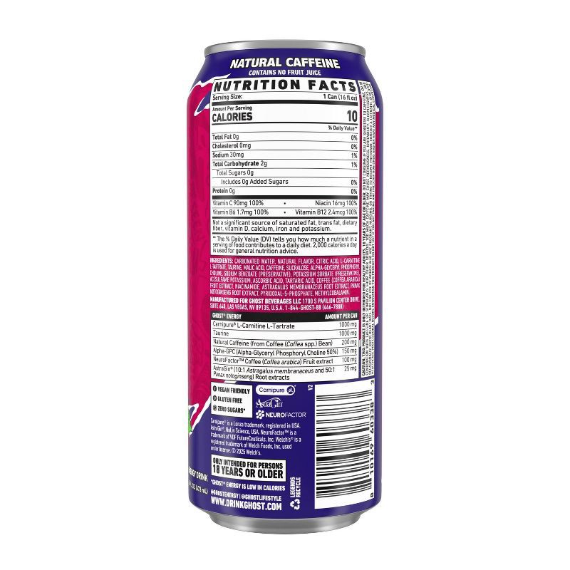 - TOTAL TRANSPARENCY: All Ghost products feature a transparent label that fully discloses the dose of each active ingredient. Zero proprietary blends means you know what you're getting in each and every sip. Ghost Energy contains zero-sugars and is vegan-friendly and gluten-free.