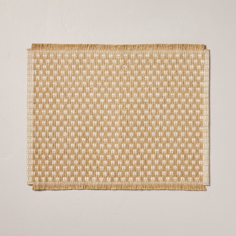 Prepare your dining table for everyday meals or family gatherings with the Patterned Placement from Hearth & Hand™ with Magnolia. This rectangular placemat features a woven pattern with fringe edges i…
