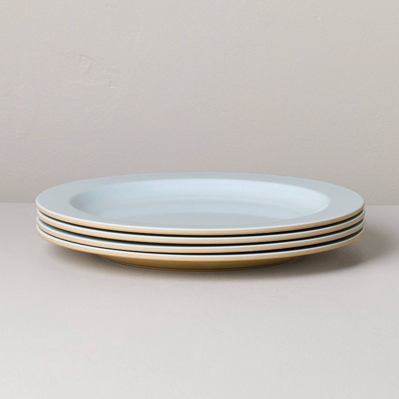Add a touch of classic elegance to your dining setup with these 4-Piece Melamine Salad Plates from Hearth & Hand™ with Magnolia. Made of melamine, these round plates feature raised edges for easy scoo…