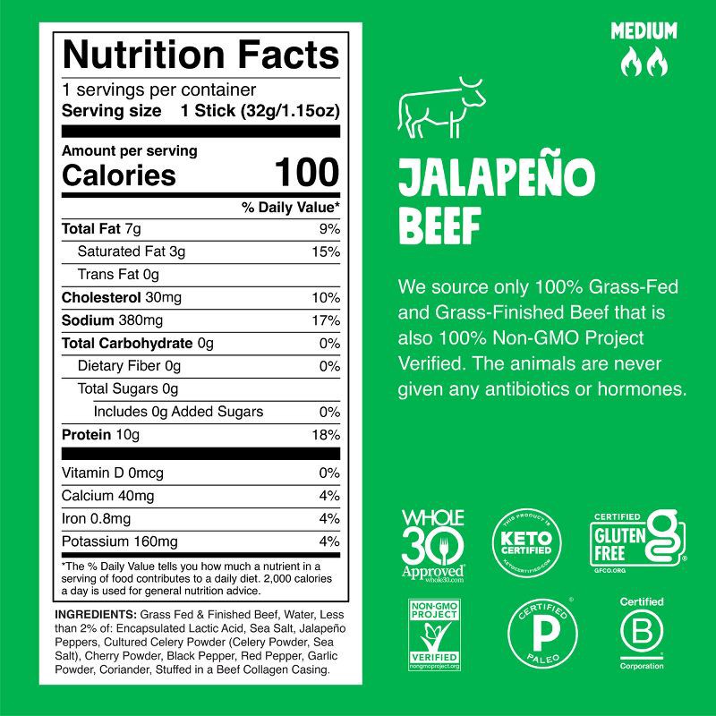 - Bold flavor with A spicy kick: our jalapeño beef meat sticks are made with real jalapeños for just the right amount of spice