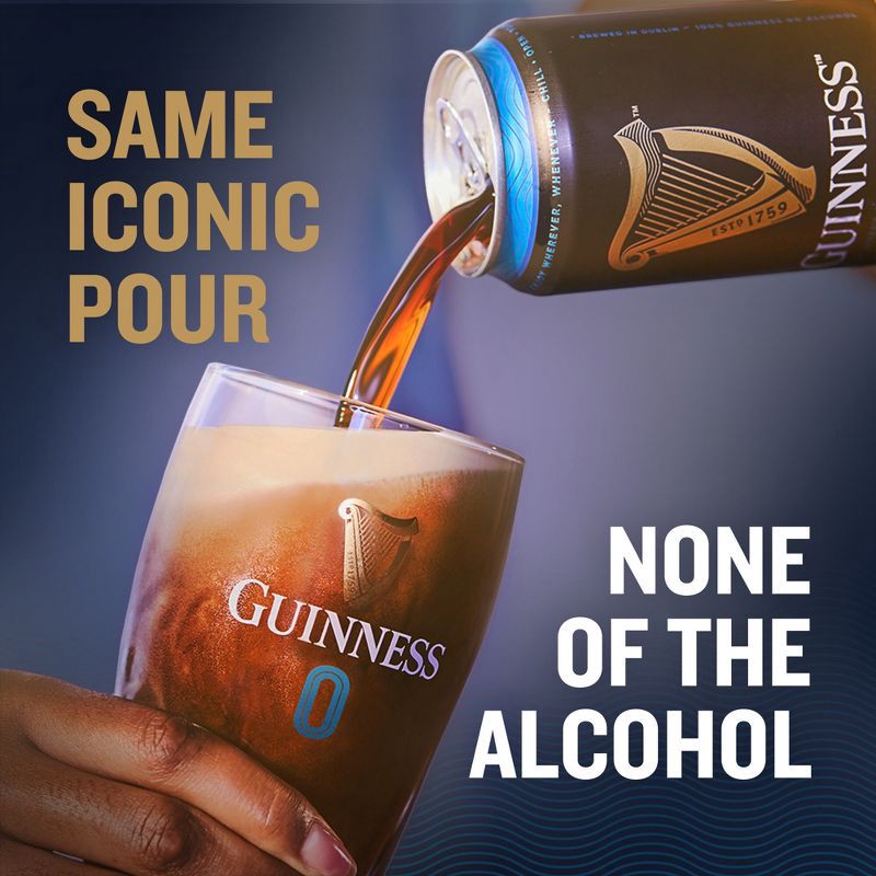 - Guinness 0 Draught boasts the same deliciously smooth taste, perfectly balanced flavor, and unique dark color of Guinness, but non-alcoholic. Less than 0.5% ABV