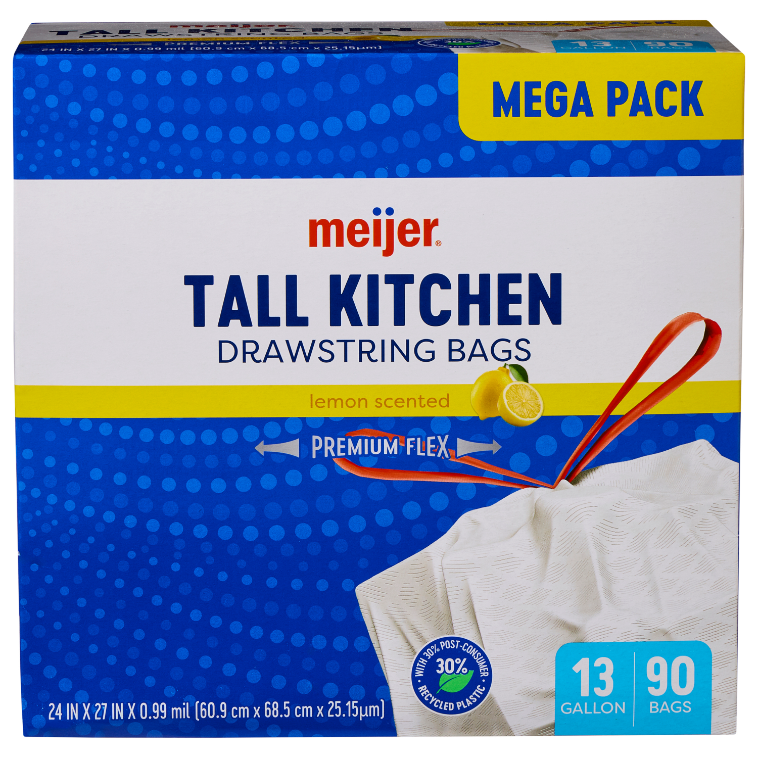 Meijer Premium Flex Lemon Scented Kitchen Bags, 13 Gallon, 90 Ct