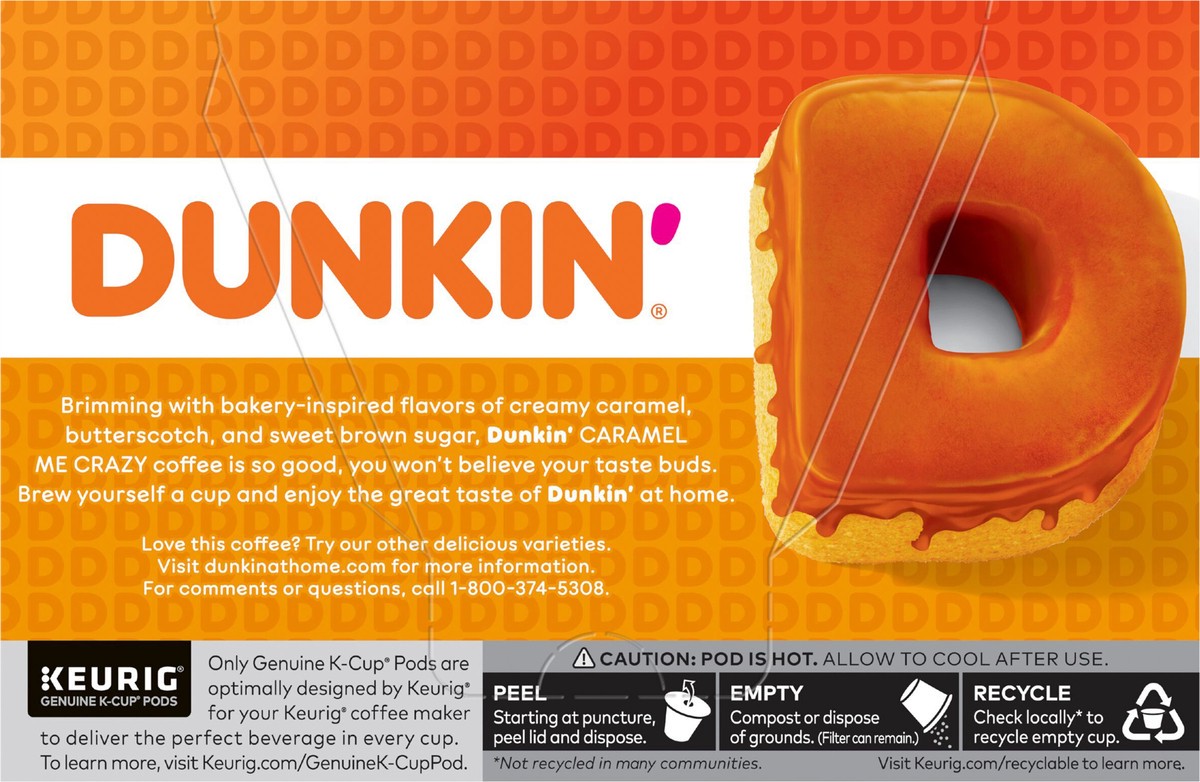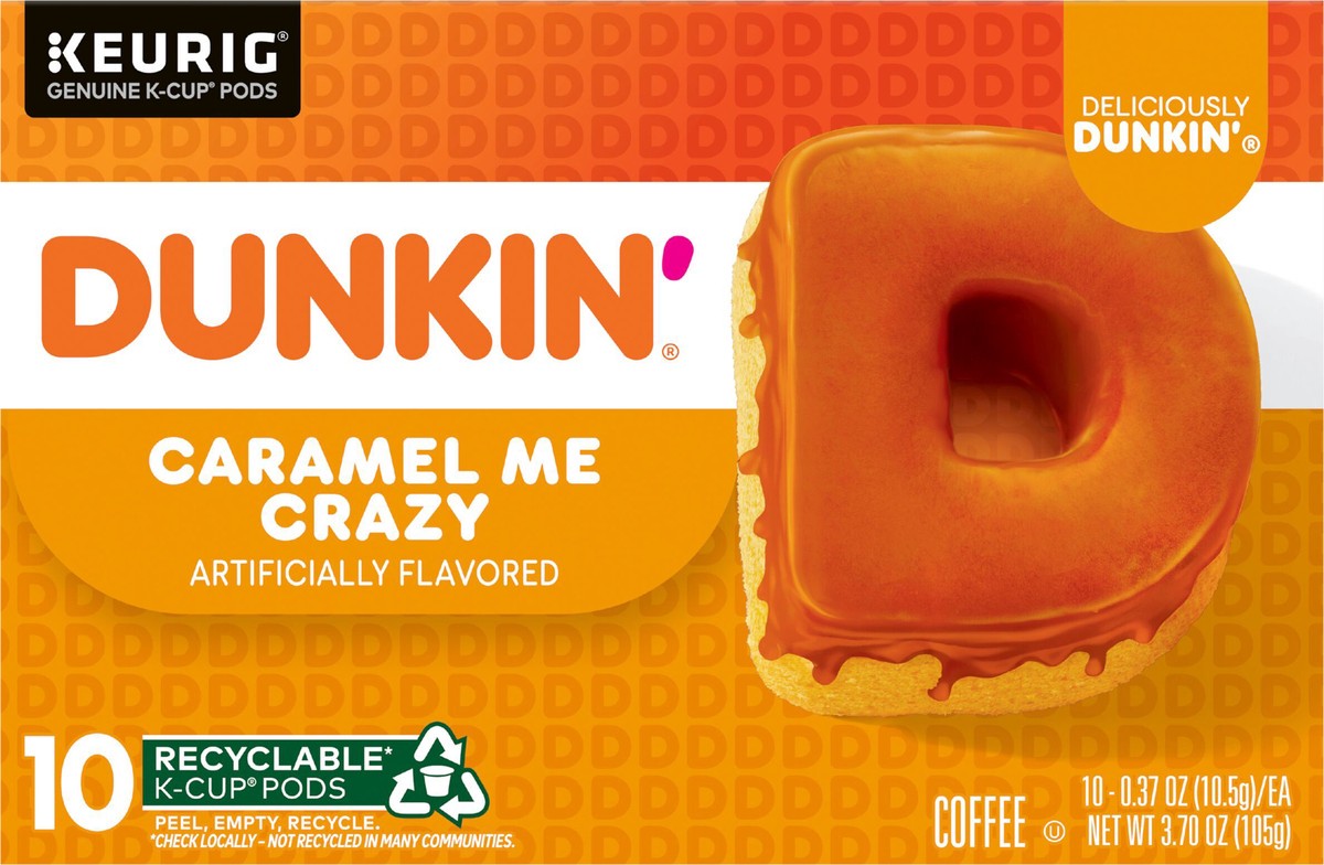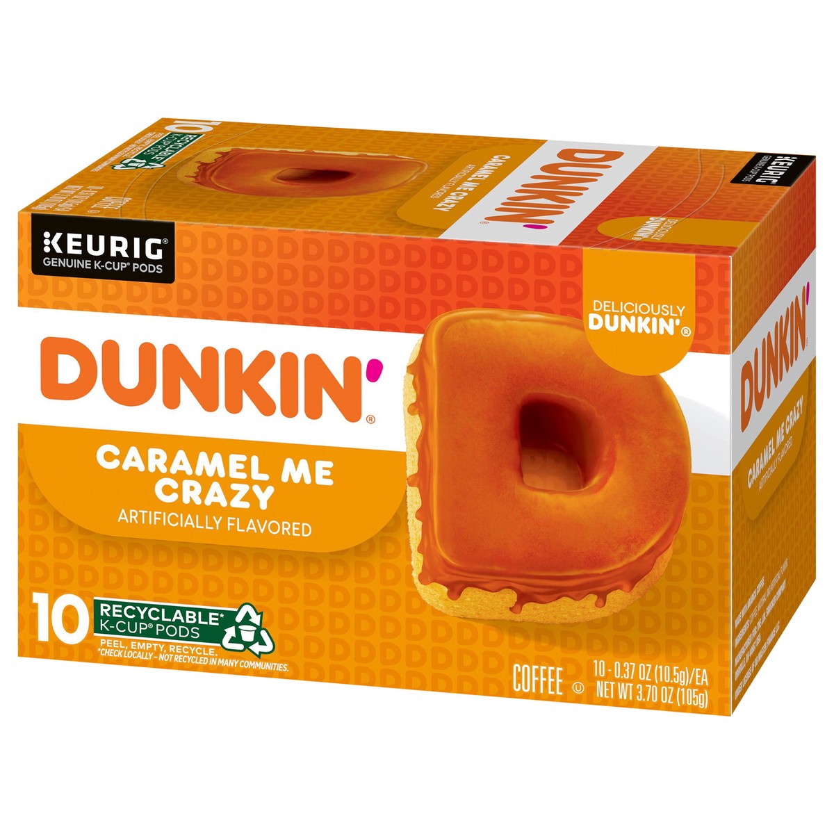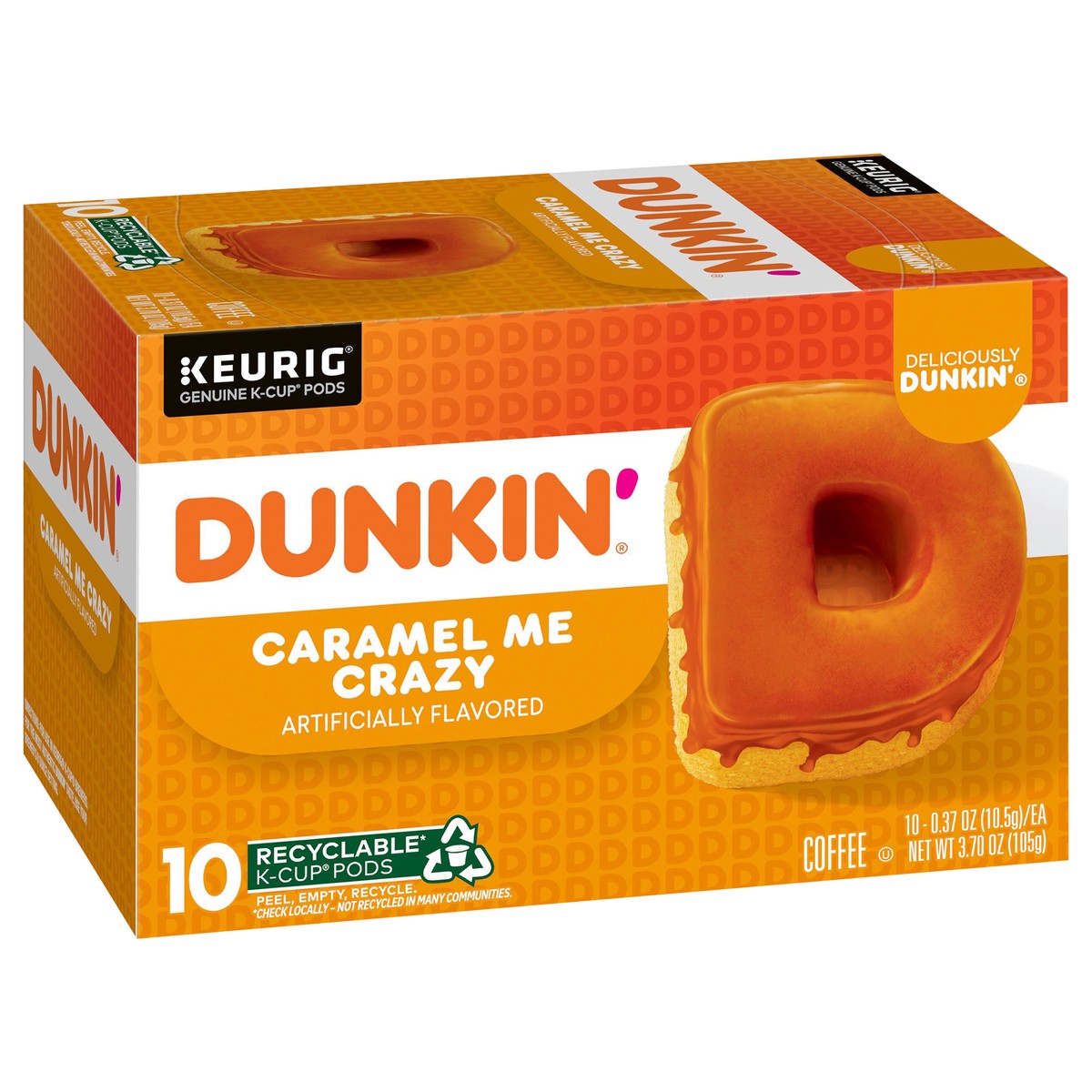 - Contains one (1) 10 count box of Dunkin’ Caramel Me Crazy artificially flavored coffee K-Cup pods