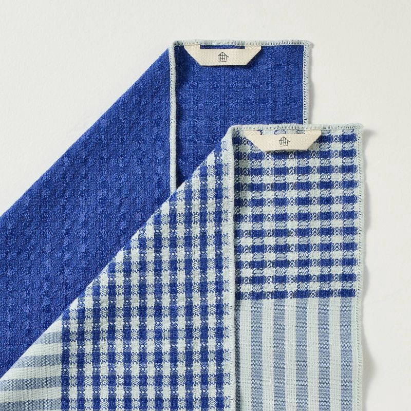 Keep your kitchen neat and tidy with this 2-Pack Kitchen Towel Set from Hearth & Hand™ with Magnolia. This set includes two kitchen towels — one featuring solid blue hue with white borders and another…