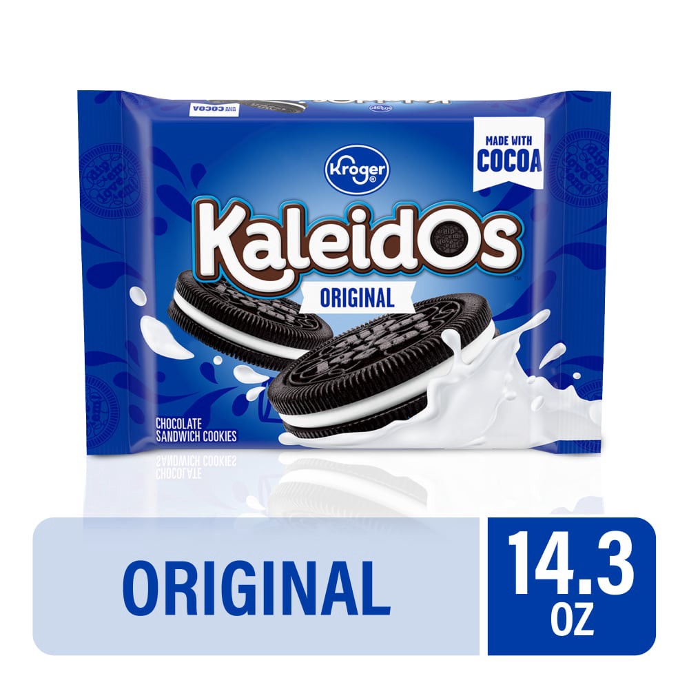Kroger® Kaleidos Original Chocolate Sandwich Cookies are the ideal treat for your sweet tooth. With their crispy chocolate wafers surrounding tasty vanilla creme, every cookie is a mix of delicious te…