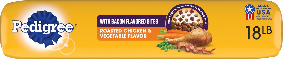 Pedigree Adult Dry Dog Food Roasted Chicken & Vegetable Flavor With Bacon Flavored Bites, 18 lb. Bag