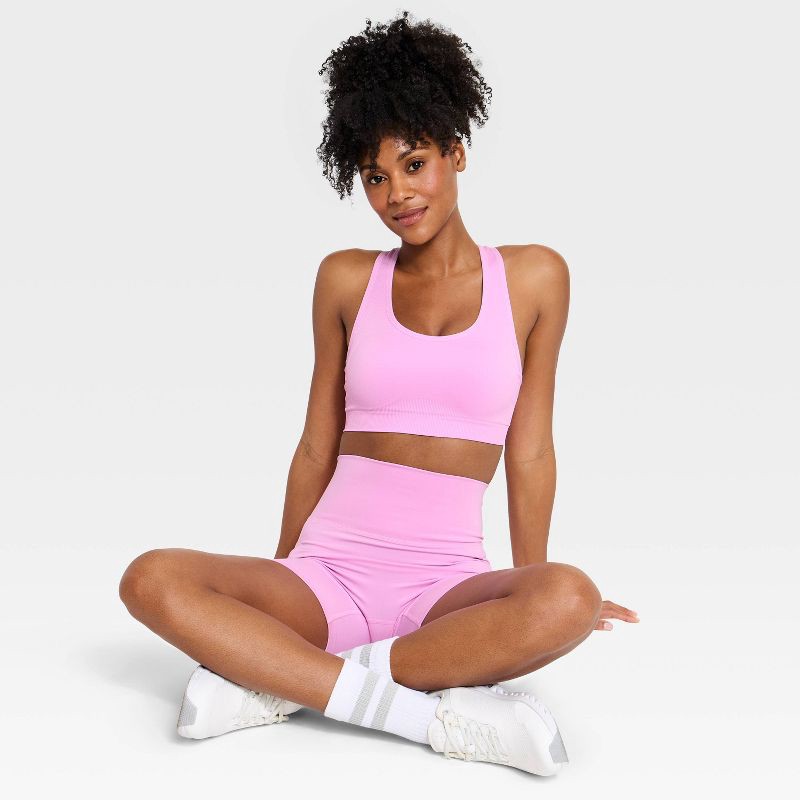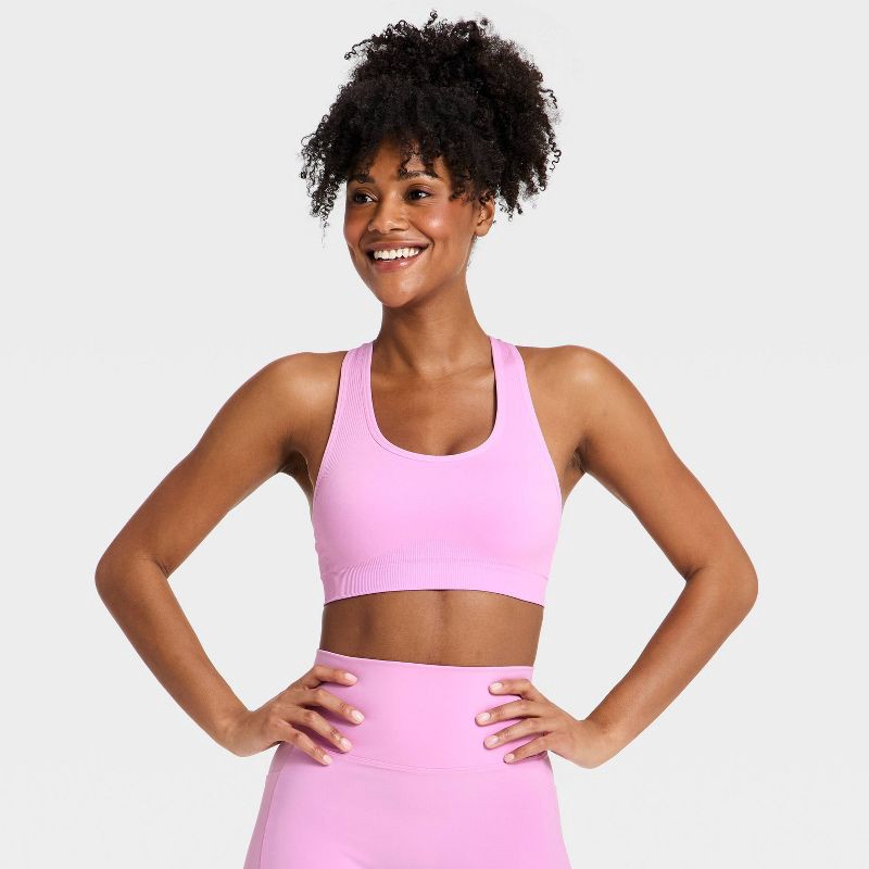 Women's Seamless Medium Support Racerback Sports Bra - All In Motion™ Light Violet L
