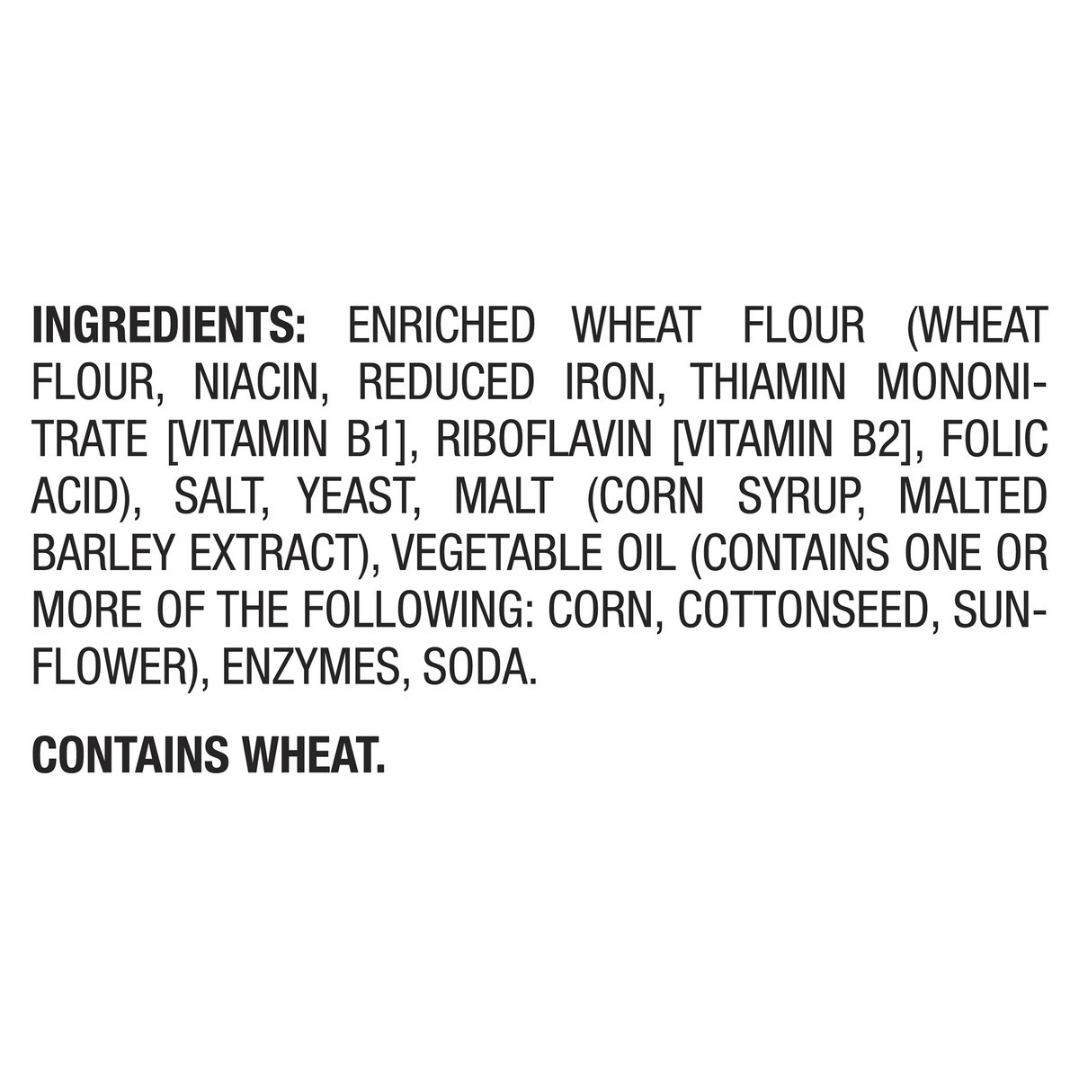 Enriched Wheat Flour (Wheat Flour, Niacin, Reduced Iron, Thiamin Mononitrate [Vitamin B1], Riboflavin [Vitamin B2], Folic Acid), Salt, Yeast, Malt (Corn Syrup, Malted Barley Extract), Vegetable Oil (C…