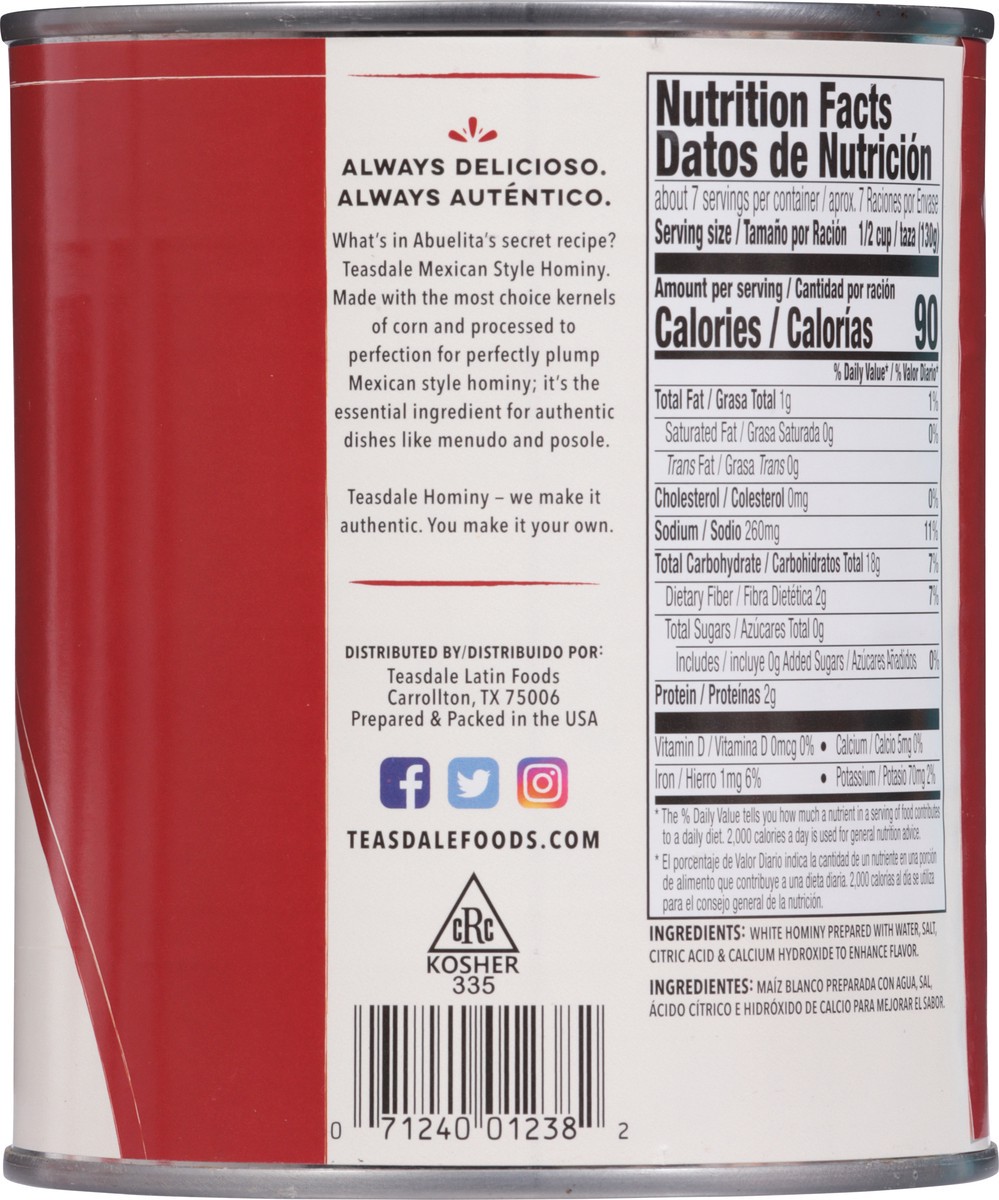 Teasdale Hominy Mexican Style Can 29 Oz
