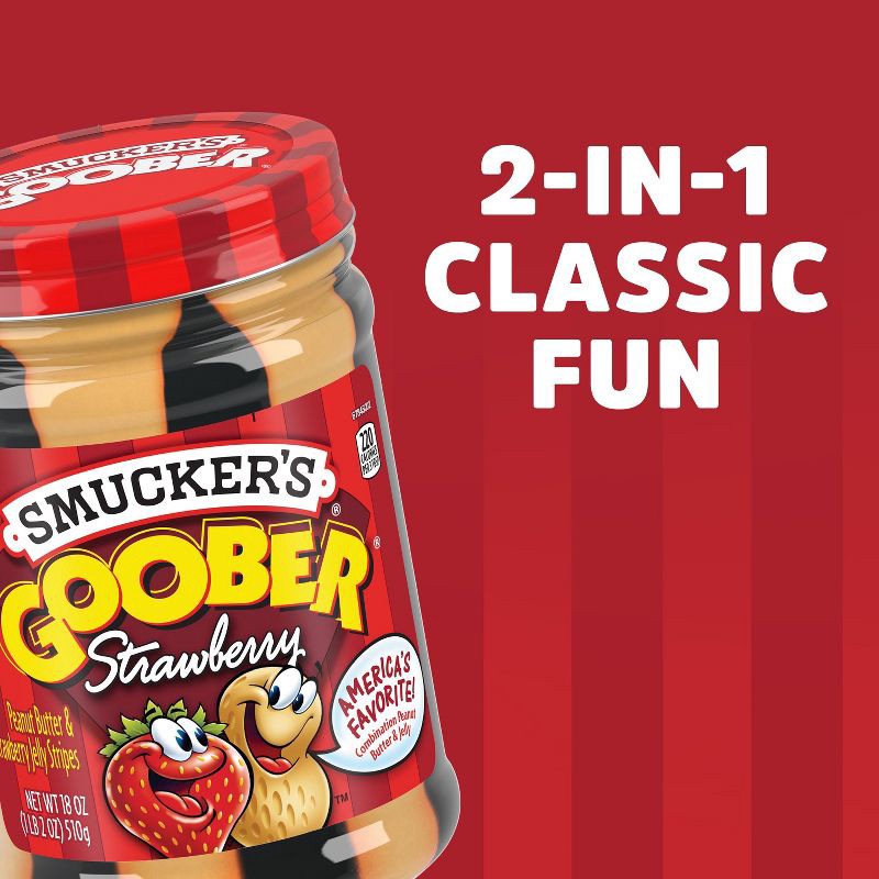 - Contains 1- 18 Ounce Jar of Smucker's Goober Peanut Butter and Strawberry Jelly Stripes