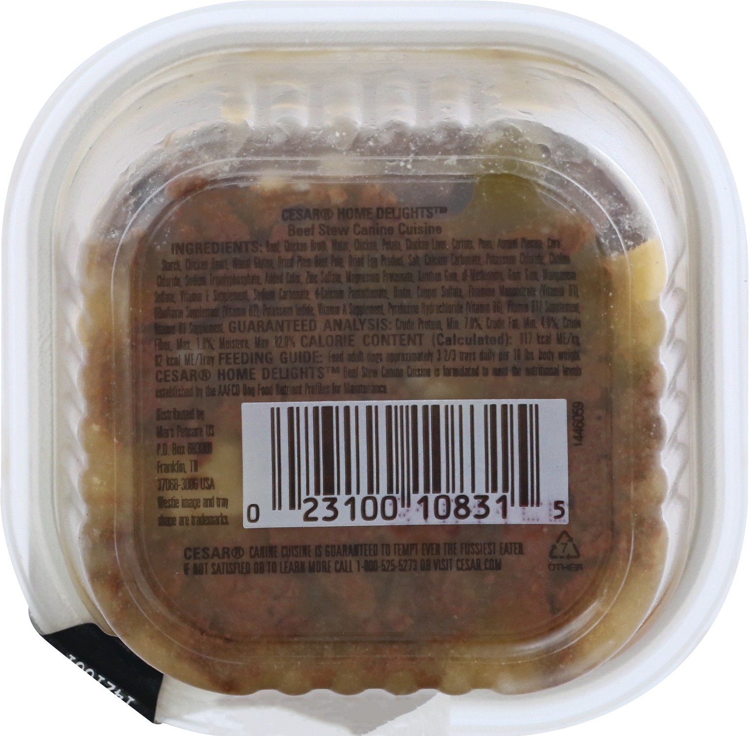 Calorie Content (Calculated): 917 kcal ME/kg. 82 kcal ME/Tray. Cesar Home Delights Beef Stew Canine Cuisine is formulated to most the nutritional levels established by the AAFCO Dog Food Nutrient Prof…