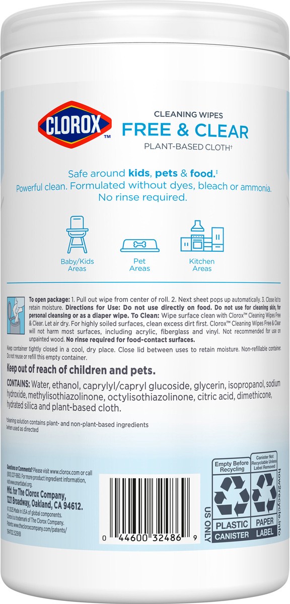 Clorox Compostable Cleaning All Purpose Free and Clear Wipes