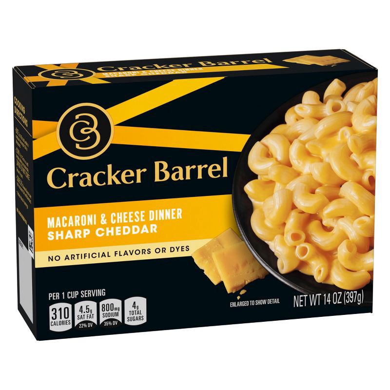 Enjoy the rich, bold and irresistible taste of our Cracker Barrel Sharp Cheddar Macaroni & Cheese Dinner. Made with no artificial flavors or dyes, our famous mac and cheese is a savory dish you can fe…