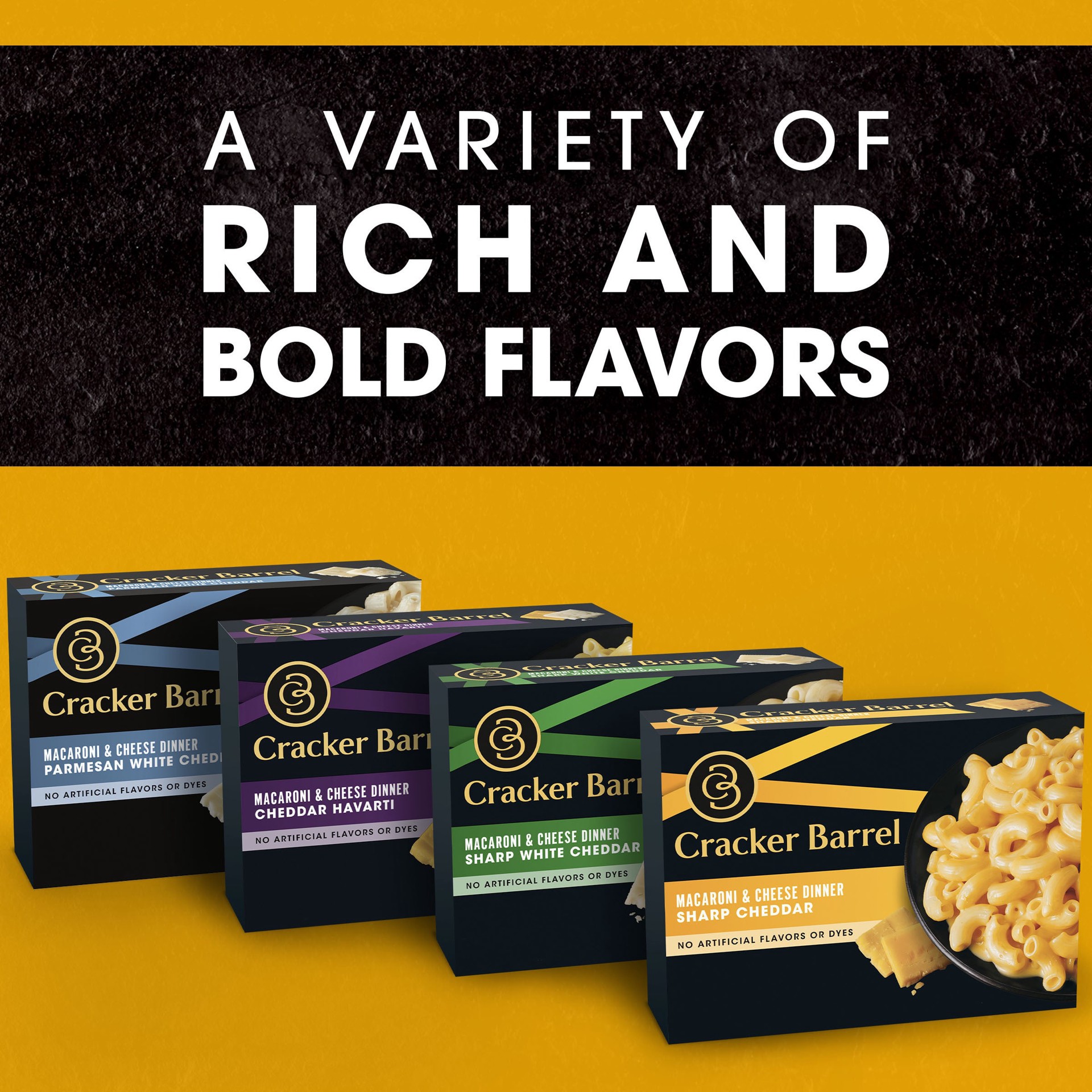 Enjoy the rich and bold cheddar taste of our Cracker Barrel Sharp Cheddar Macaroni & Cheese Box. Made with no artificial flavors or dyes, our famous mac and cheese is a savory dish that you can feel g…